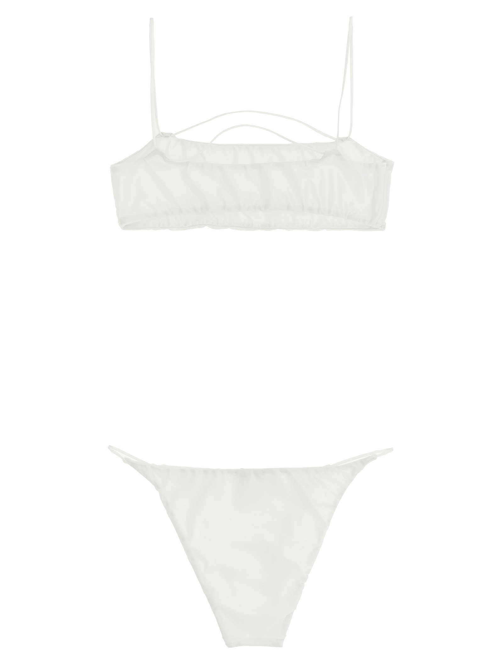 'Sporty Line' silk-effect lycra bikini, bralette top with thin straps and side underwires, and briefs with medium coverage.
