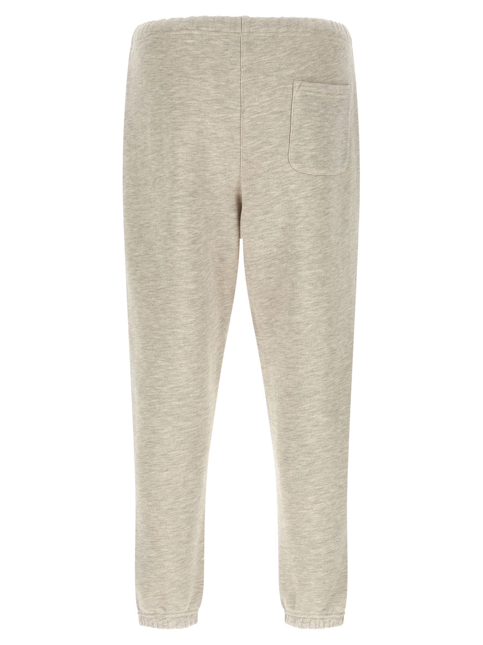 Mélange gauze cotton joggers with front logo embroidery, straight leg, drawstring elastic waistband, pockets, elastic cuffs at the hem.