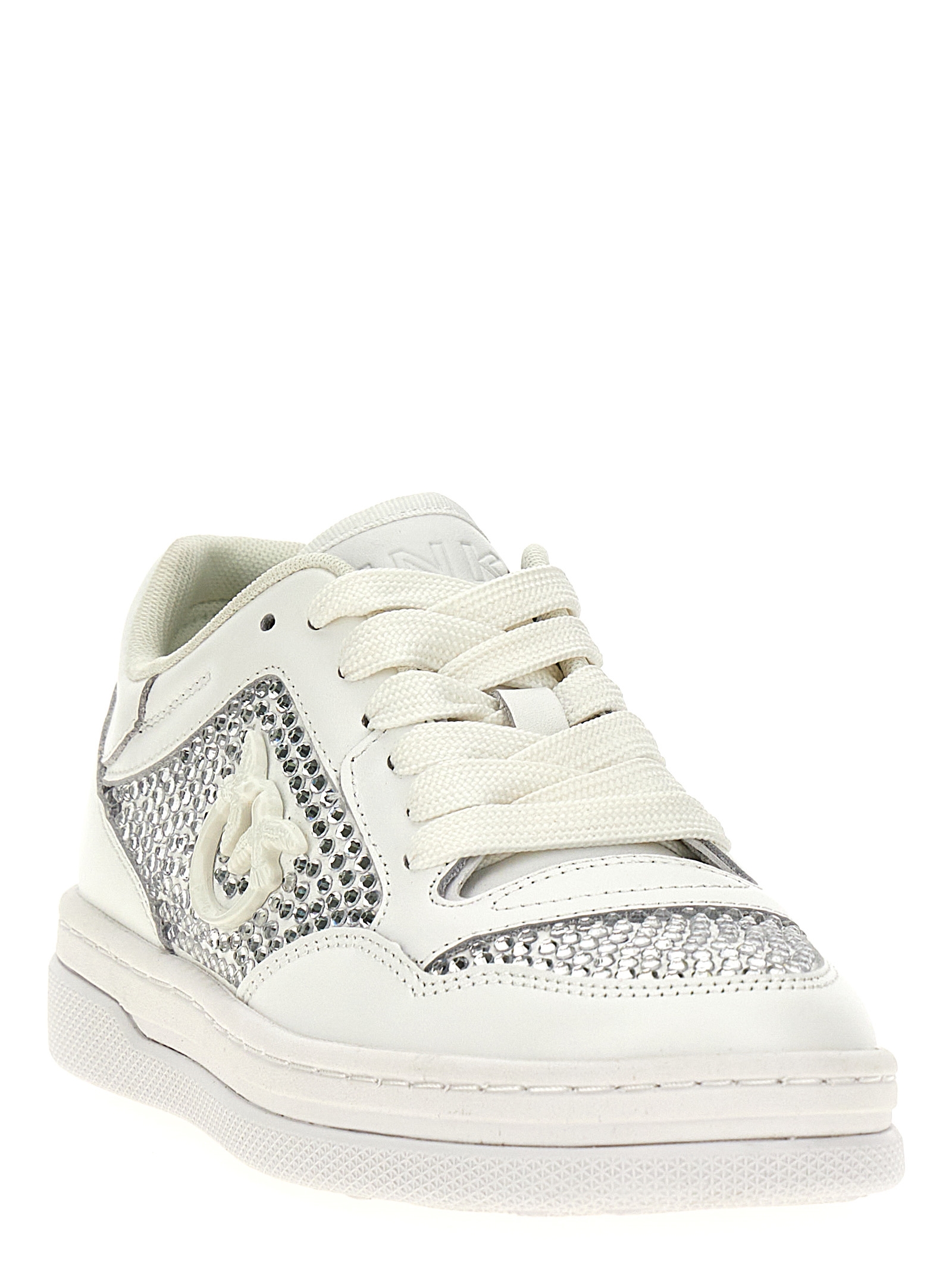 'Mandy 09' leather sneakers with rhinestone appliqué, lace-up closure, embossed logo on the tongue, rubber sole.Характеристики товара