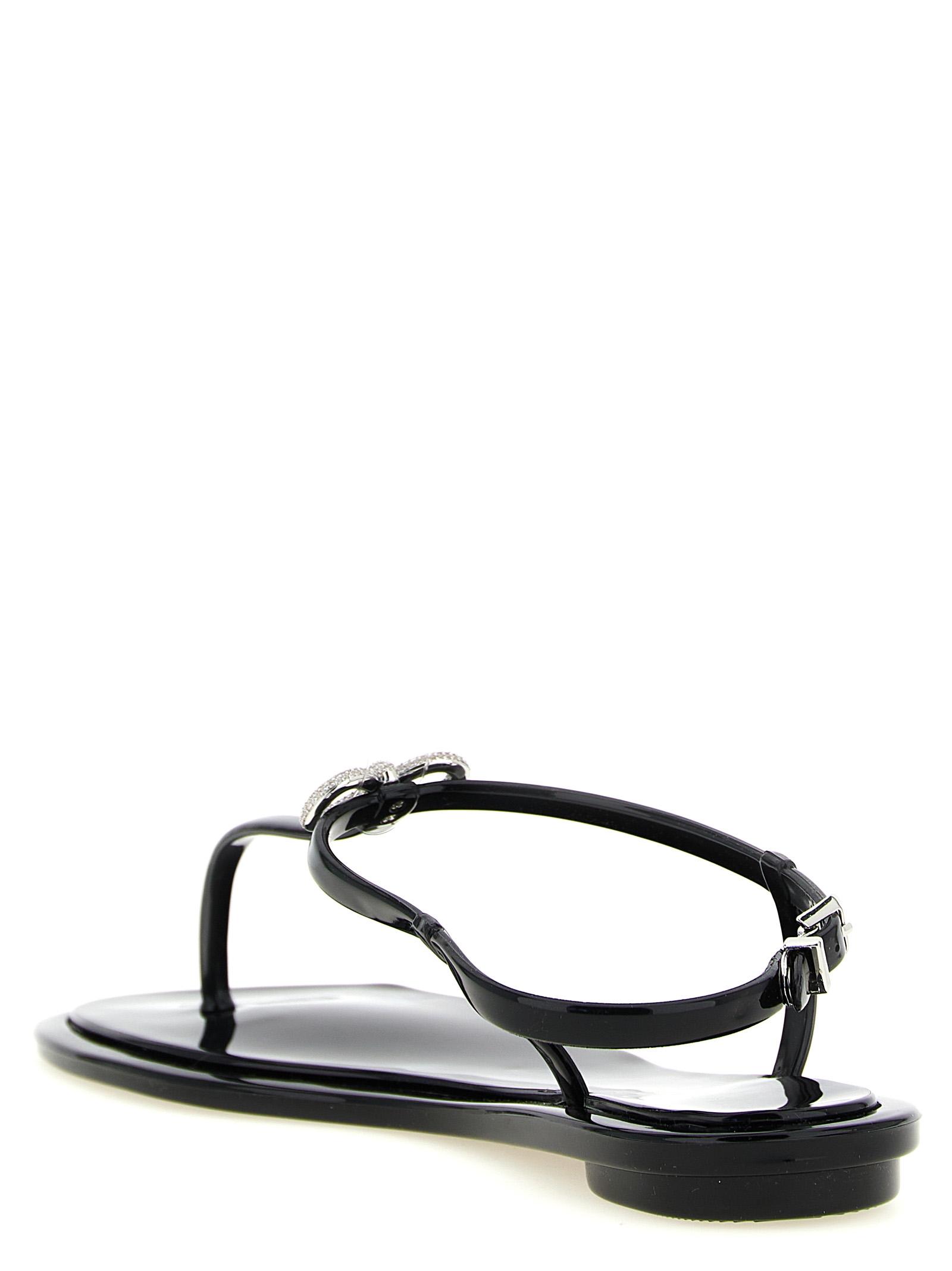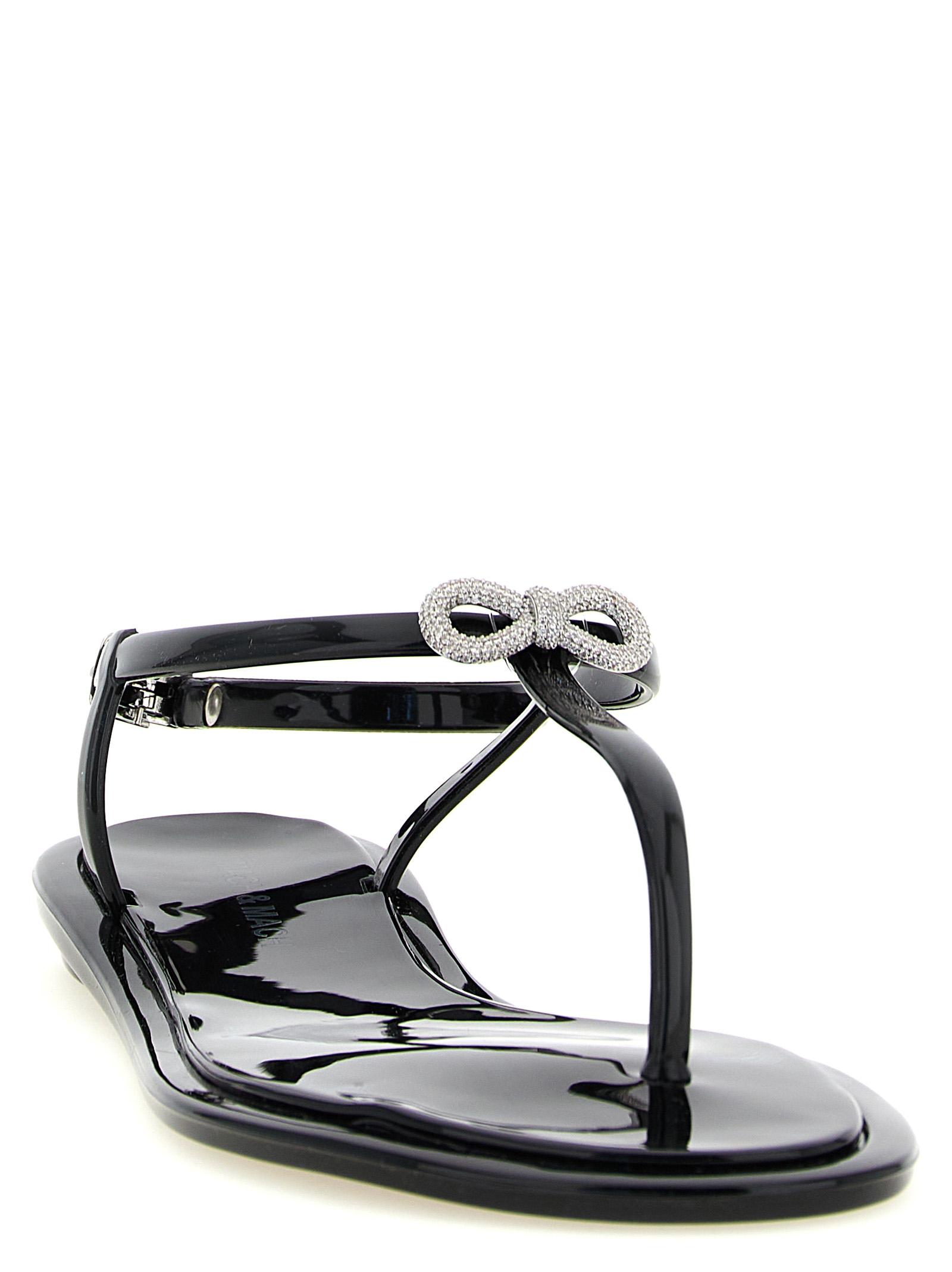 Резиновые сандалии с перемычкой, украшенные металлическим «двойным бантом» и кристальными аппликациями, регулируемый ремешок.Характеристики товара