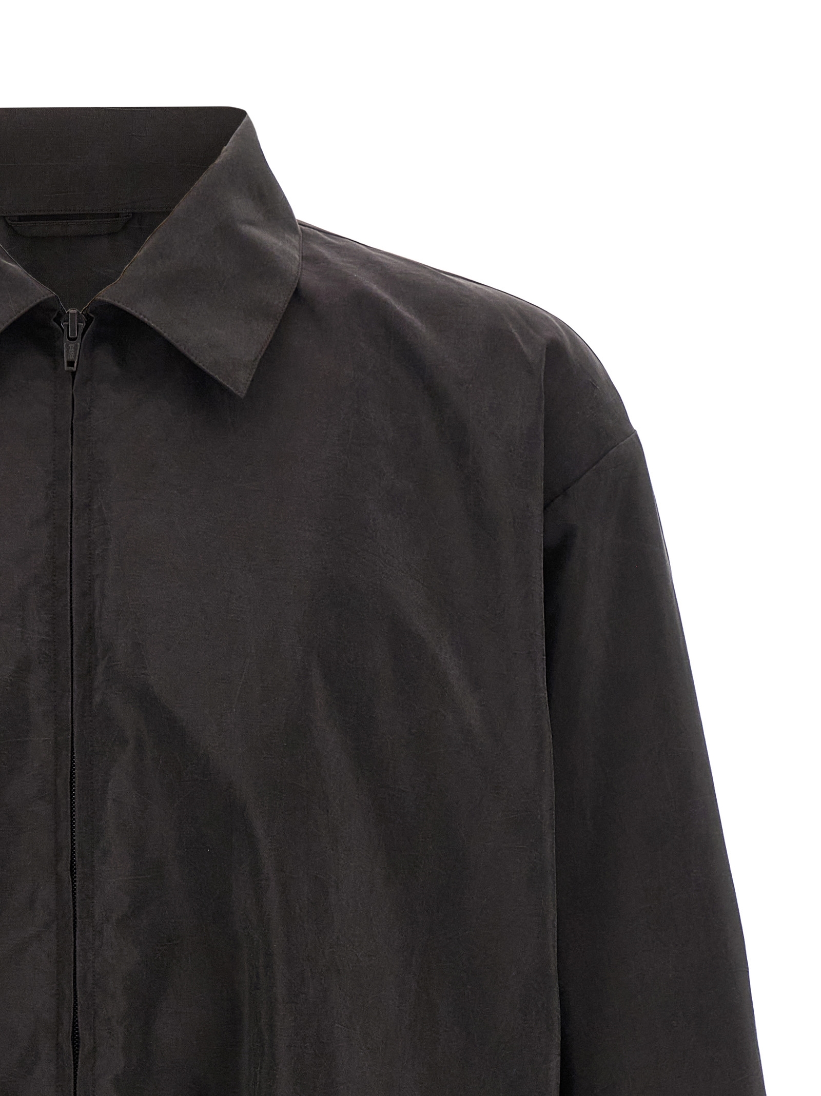 Пиджак из смеси шелка и блестящего мятого нейлона, без подкладки, с рубашечным воротником, застежкой-молнией спереди, карманами, длинными рукавами с эластичными манжетами и приспущенными плечами, эластичным низом.Характеристики товара