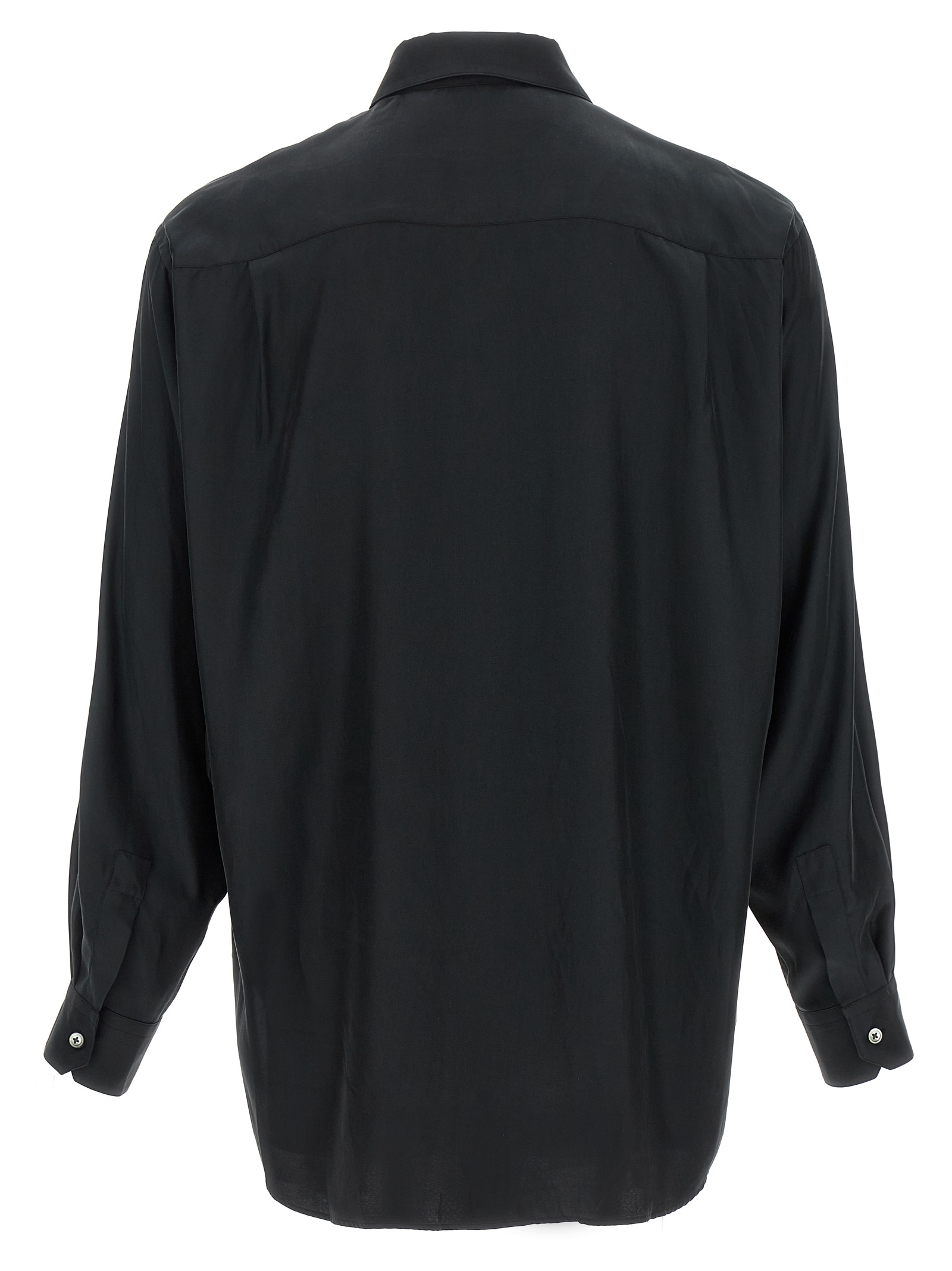 Блестящая рубашка из купро-твила, нагрудный карман, застежка на перламутровые пуговицы спереди, длинные рукава с прямыми манжетами и приспущенными плечами, закругленный и асимметричный подол.Характеристики товара