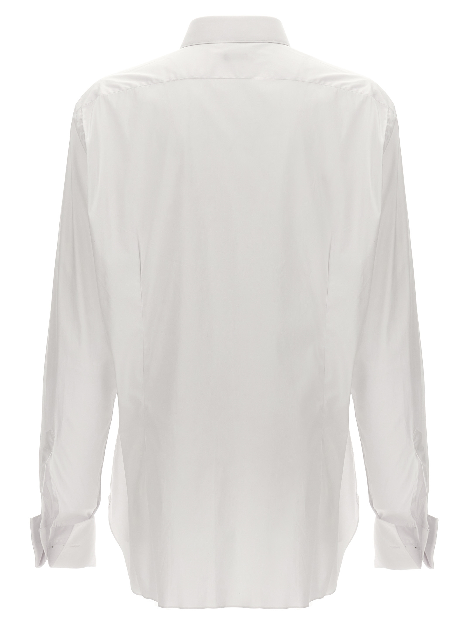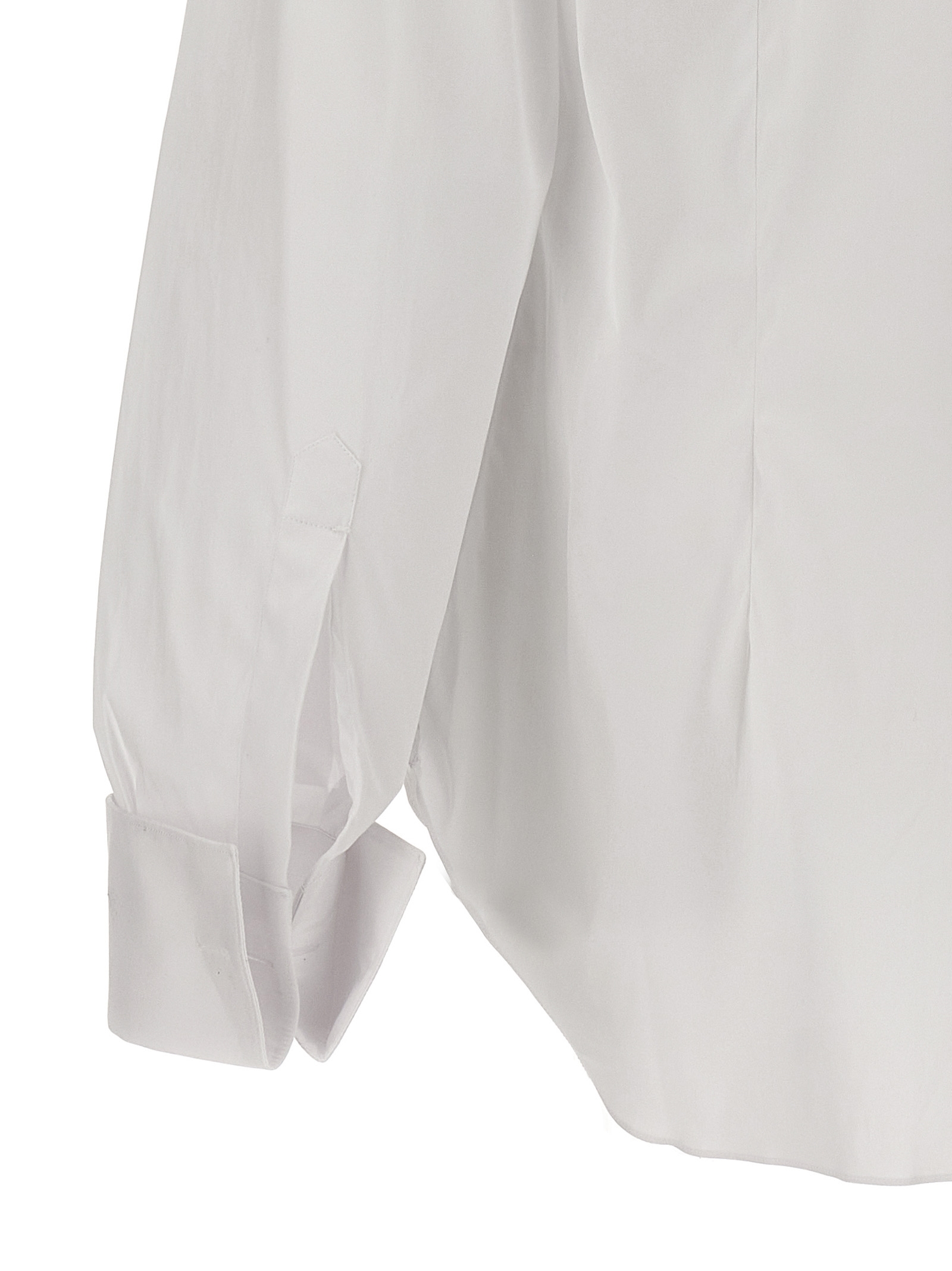 Cotton blend poplin shirt with button closure, long cuffed sleeves.