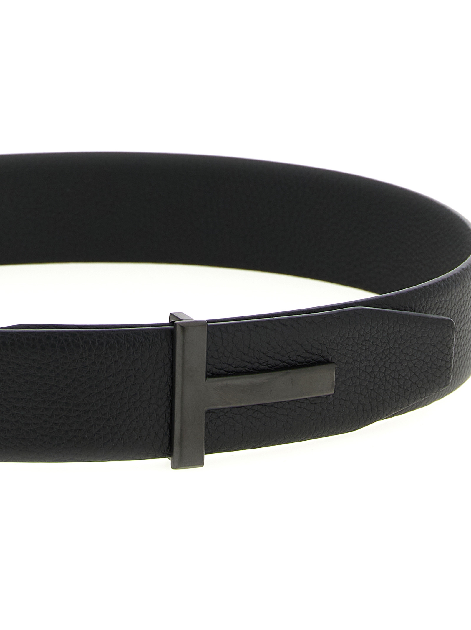 Soft hammered leather belt with metal buckle with tone-on-tone matte finish.