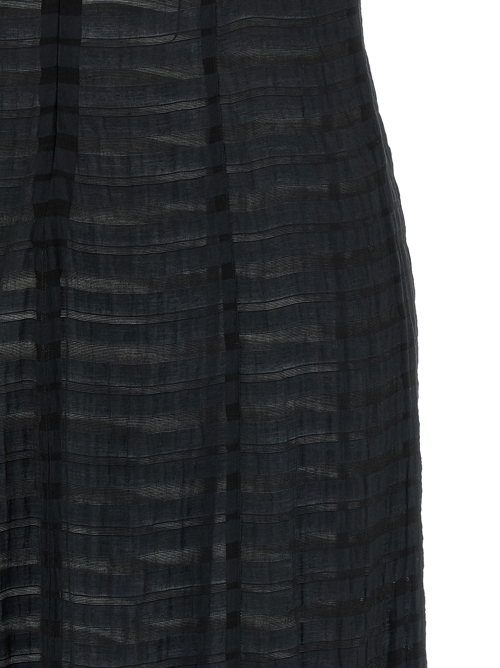 Long 'Dori' dress in light semi-transparent striped muslin, flared silhouette, crewneck, sleeveless, back zip closure.