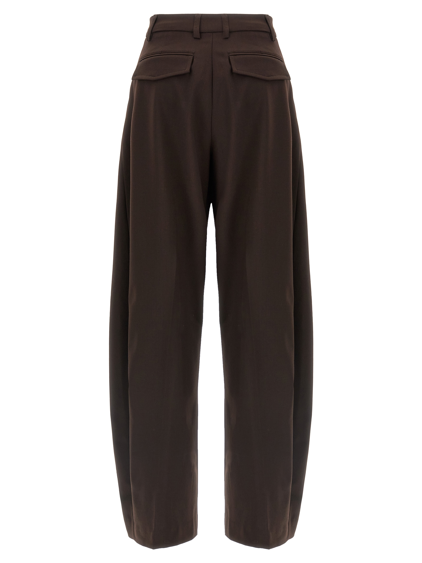 'Billie' wool blend pants, front pin tucks, wide and straight leg, hook and button zip closure, pockets.
