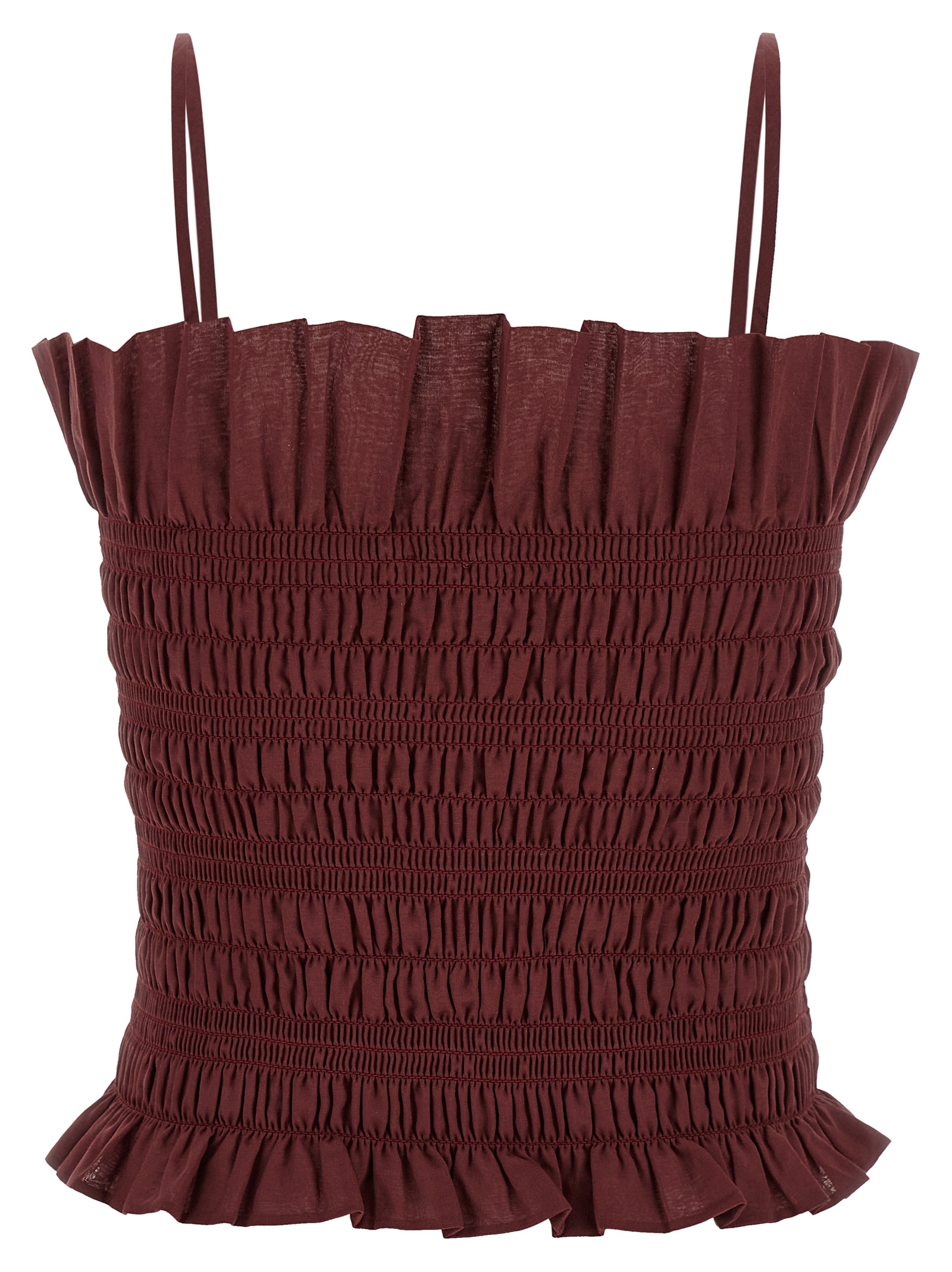'Suri' tube top in cotton muslin with thin and adjustable straps, smock stitch pattern, curling with flounces on the edges.Характеристики товара
