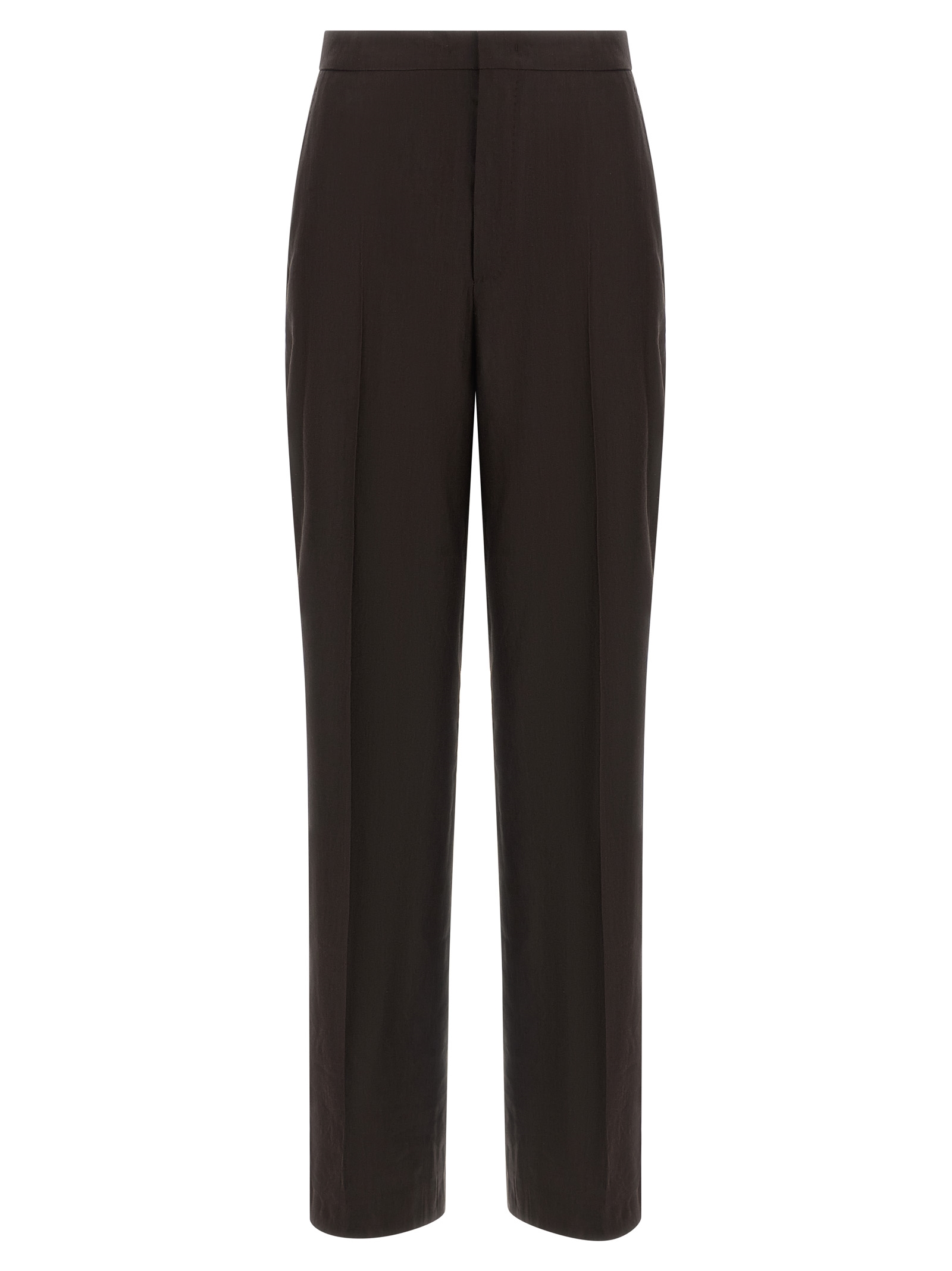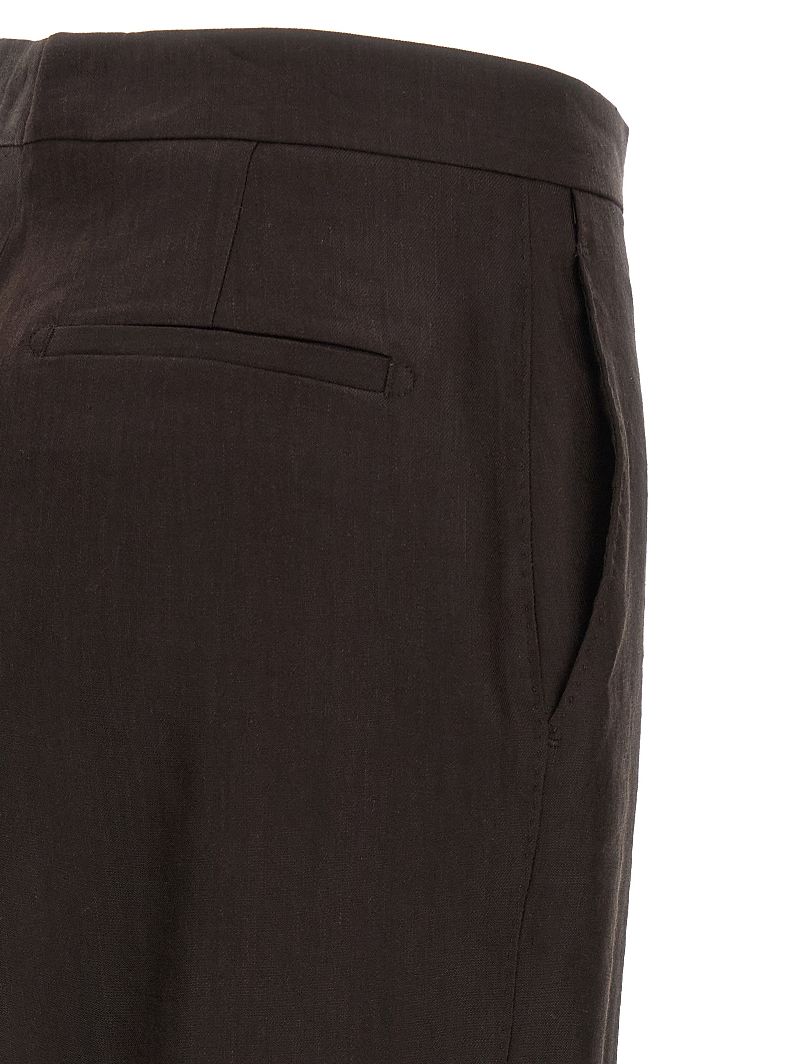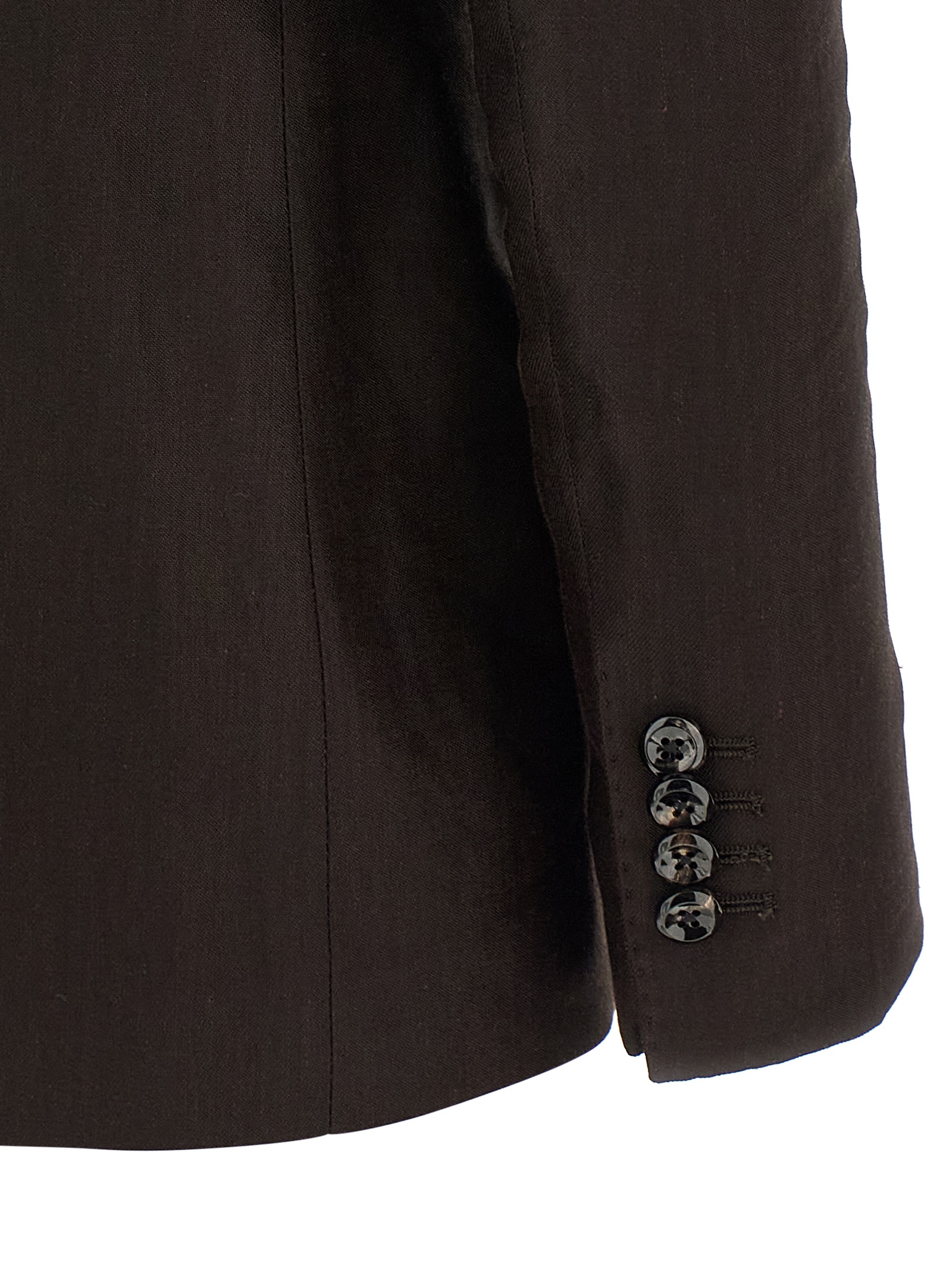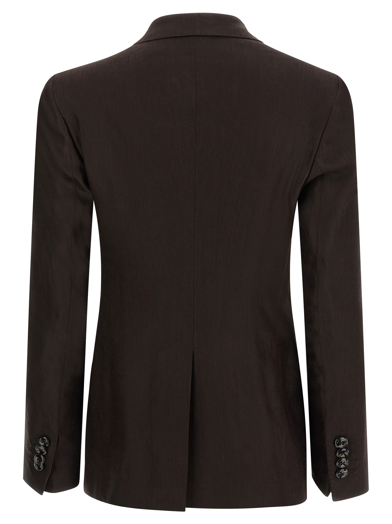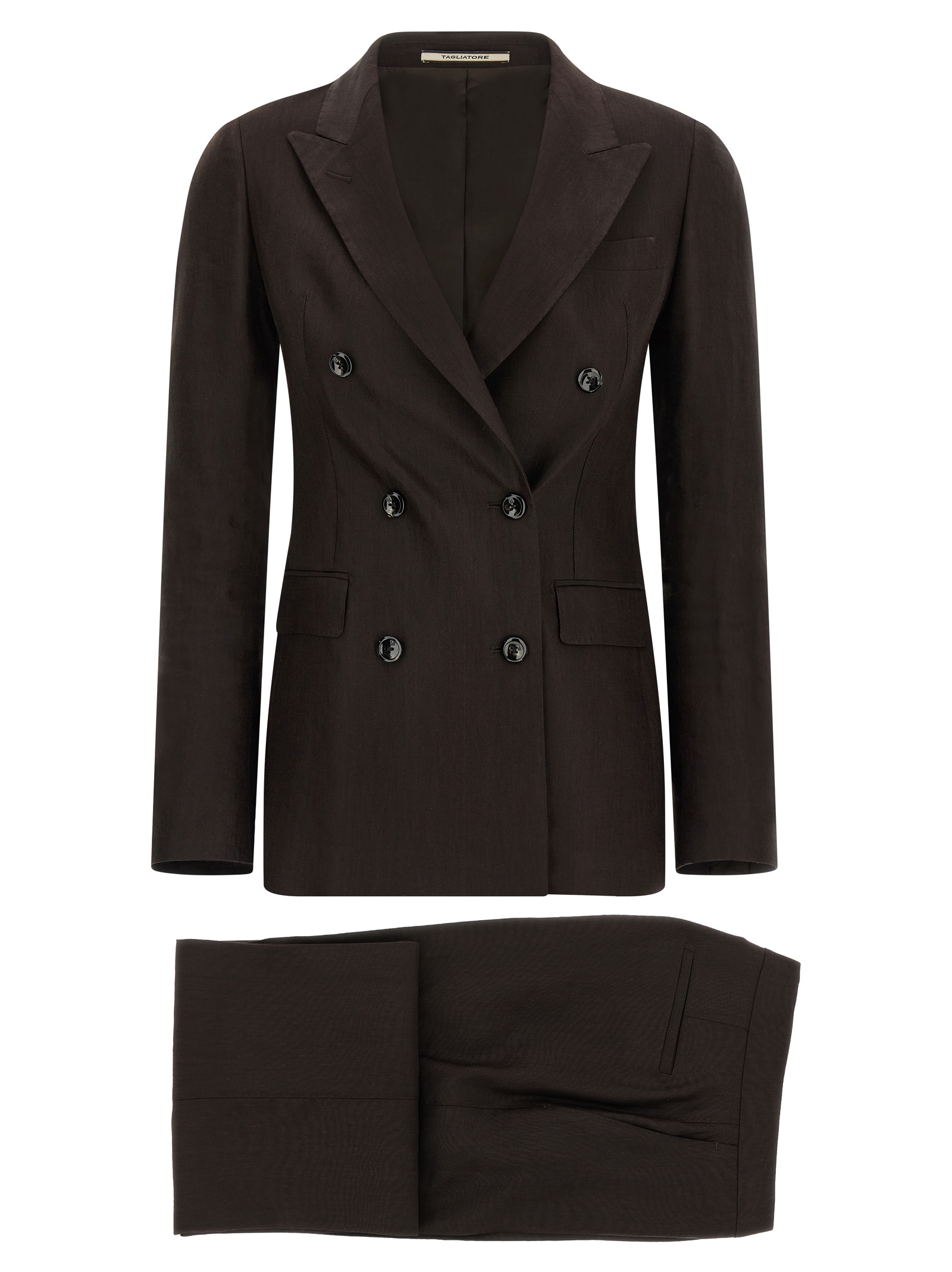 'Parigi' dress in linen and viscose blend, consisting of double-breasted blazer with front horn button closure, peak lapels, breast pocket, flap pockets, structured shoulder strap, long sleeves, back split, cupro lining and trousers with stretched pleat, wide and straight leg, front French pockets, back welt pockets, zip and front hook closure, cotton lining.