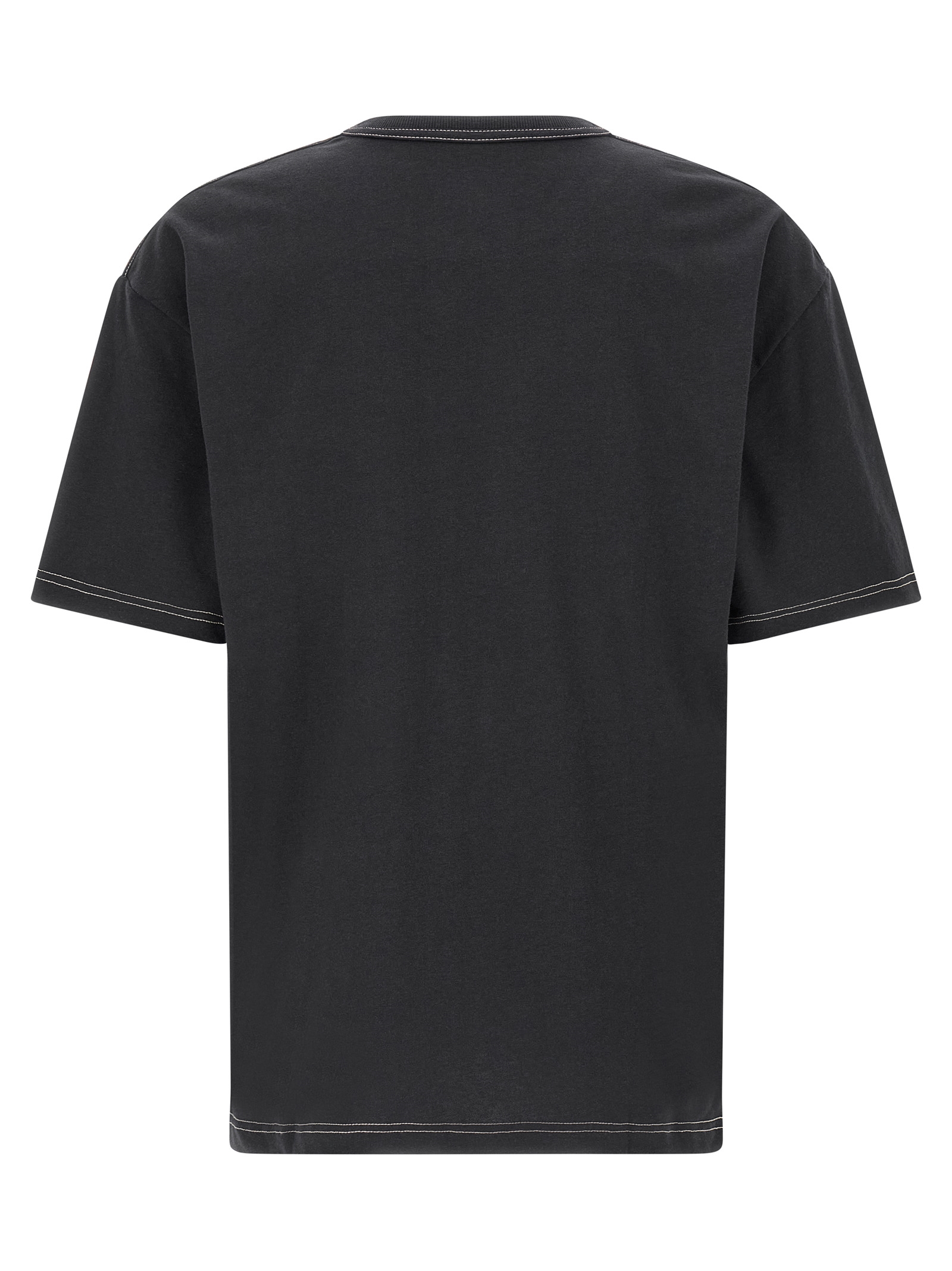 'Boxy' cotton and linen blend T-shirt with contrast stitching, breast pocket, crew neck, short sleeves with dropped shoulders, side slits on the hem.