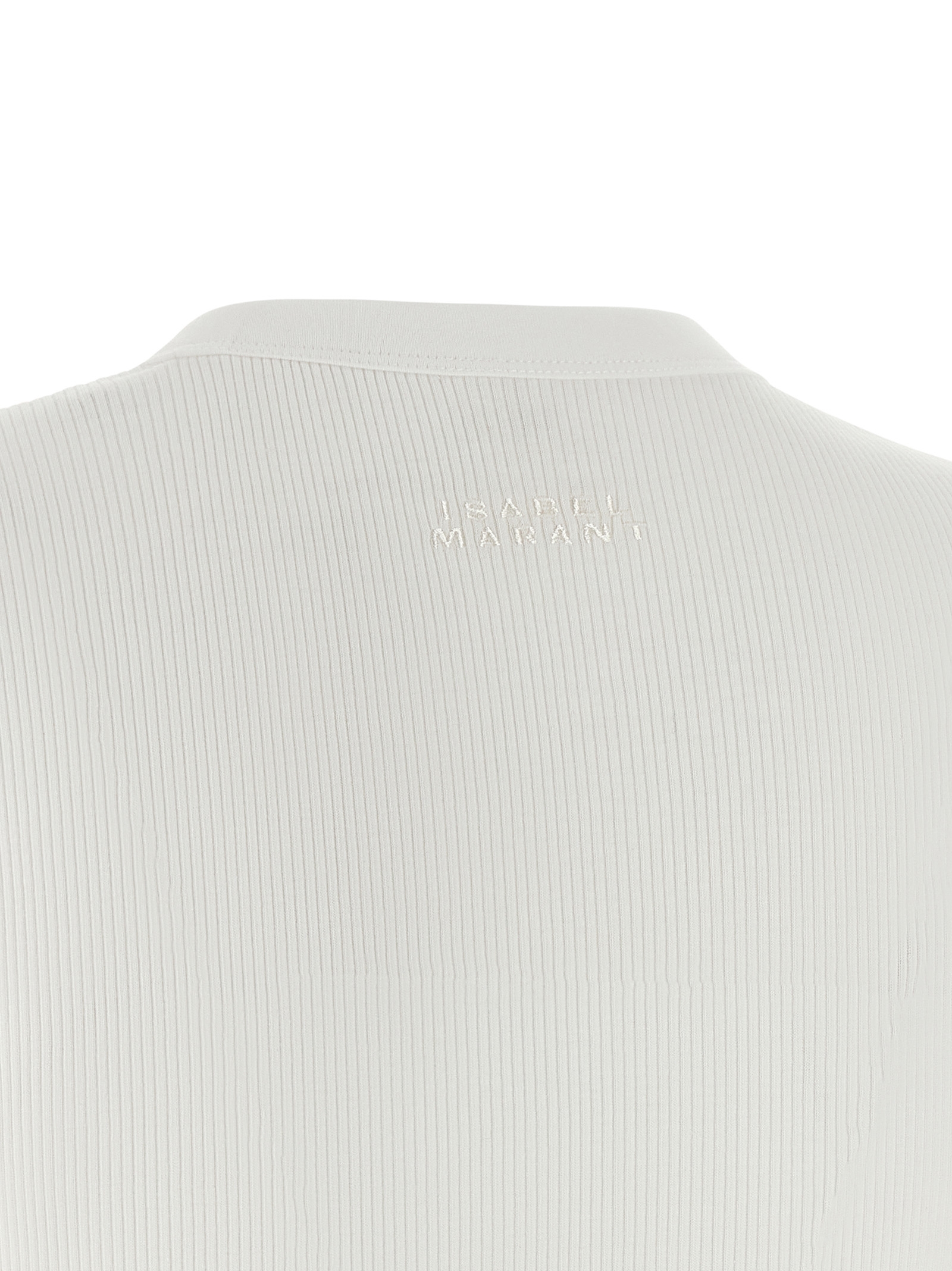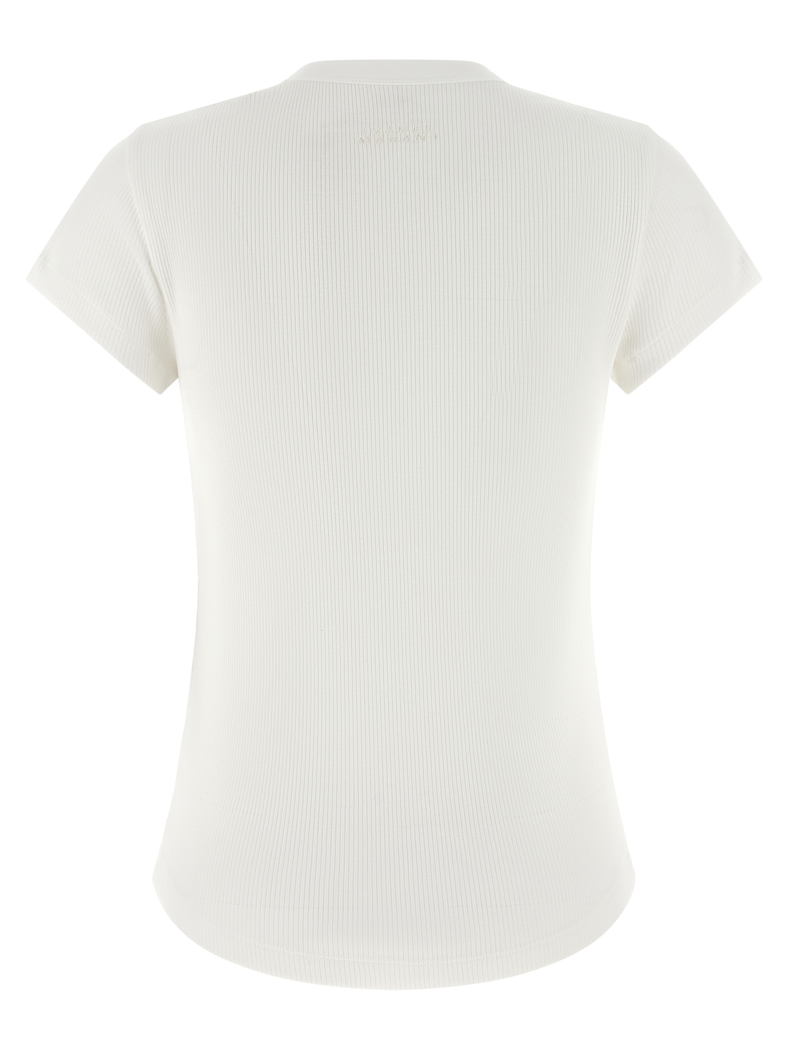'Taomi' ribbed cotton jersey t-shirt with round neckline, tone-on-tone logo embroidery on the back, short sleeves, rounded hem.