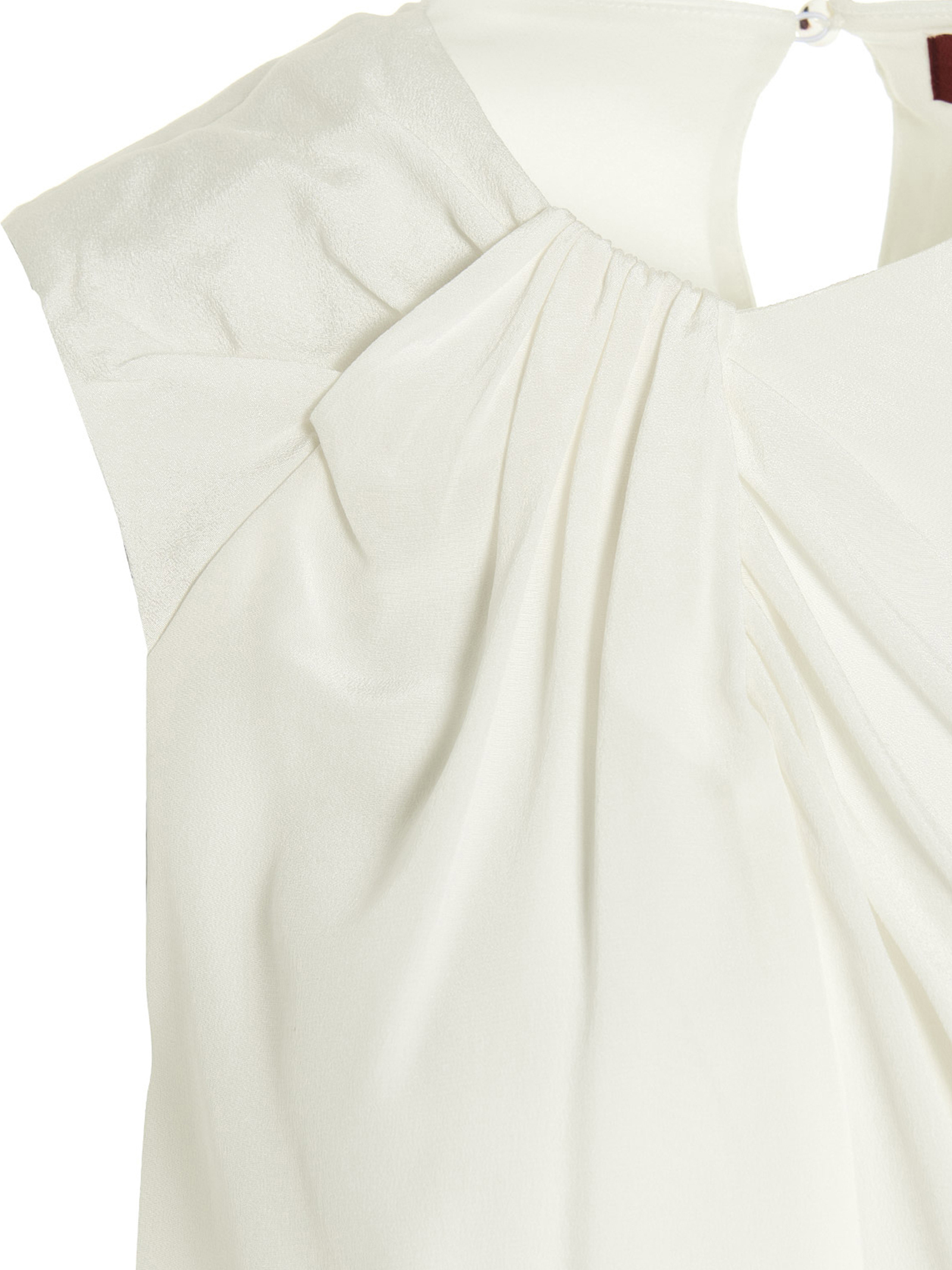 Cashmere' crêpe de chine silk top with crewneck, asymmetric draping and butterfly sleeves.