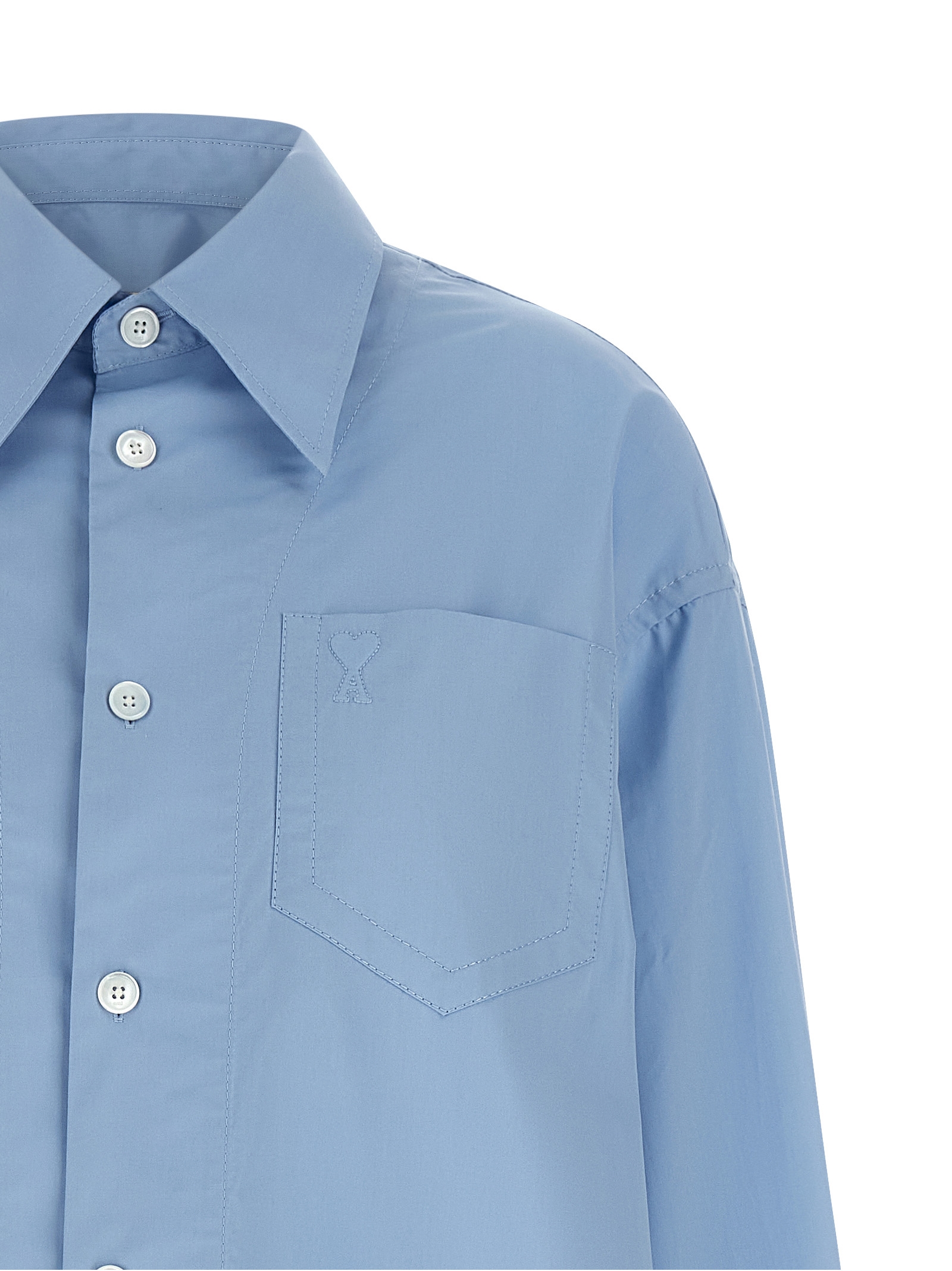 Midi dress in cotton poplin with chemisier style front button closure, side pocket with stitching and 'Ami De Coeur' logo, asymmetrical length, rounded logo, long sleeves with cuffs.
