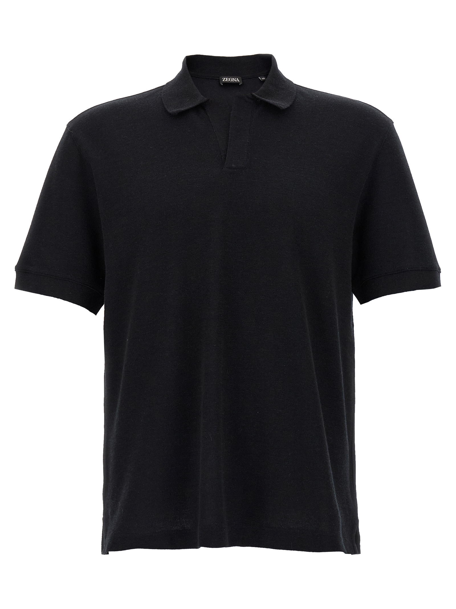 Piqué cotton and cashmere blend polo shirt, V-neck, collar, short sleeves, side slits.Характеристики товара