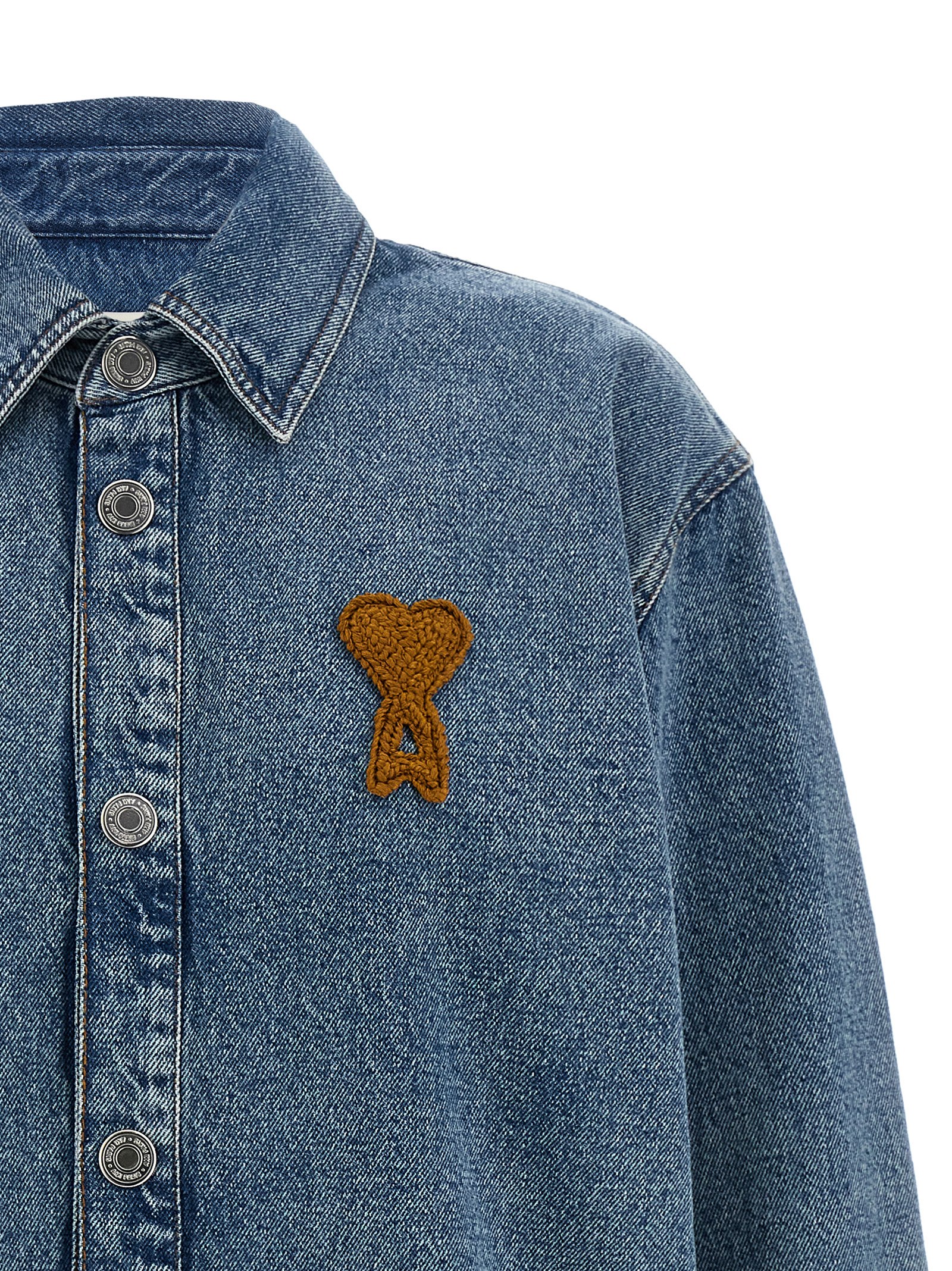 Used-effect indigo cotton denim overshirt with contrast stitching, Ami De Coeur crochet patch and front snap button closure, shirt collar, long cuffed sleeves.Характеристики товара