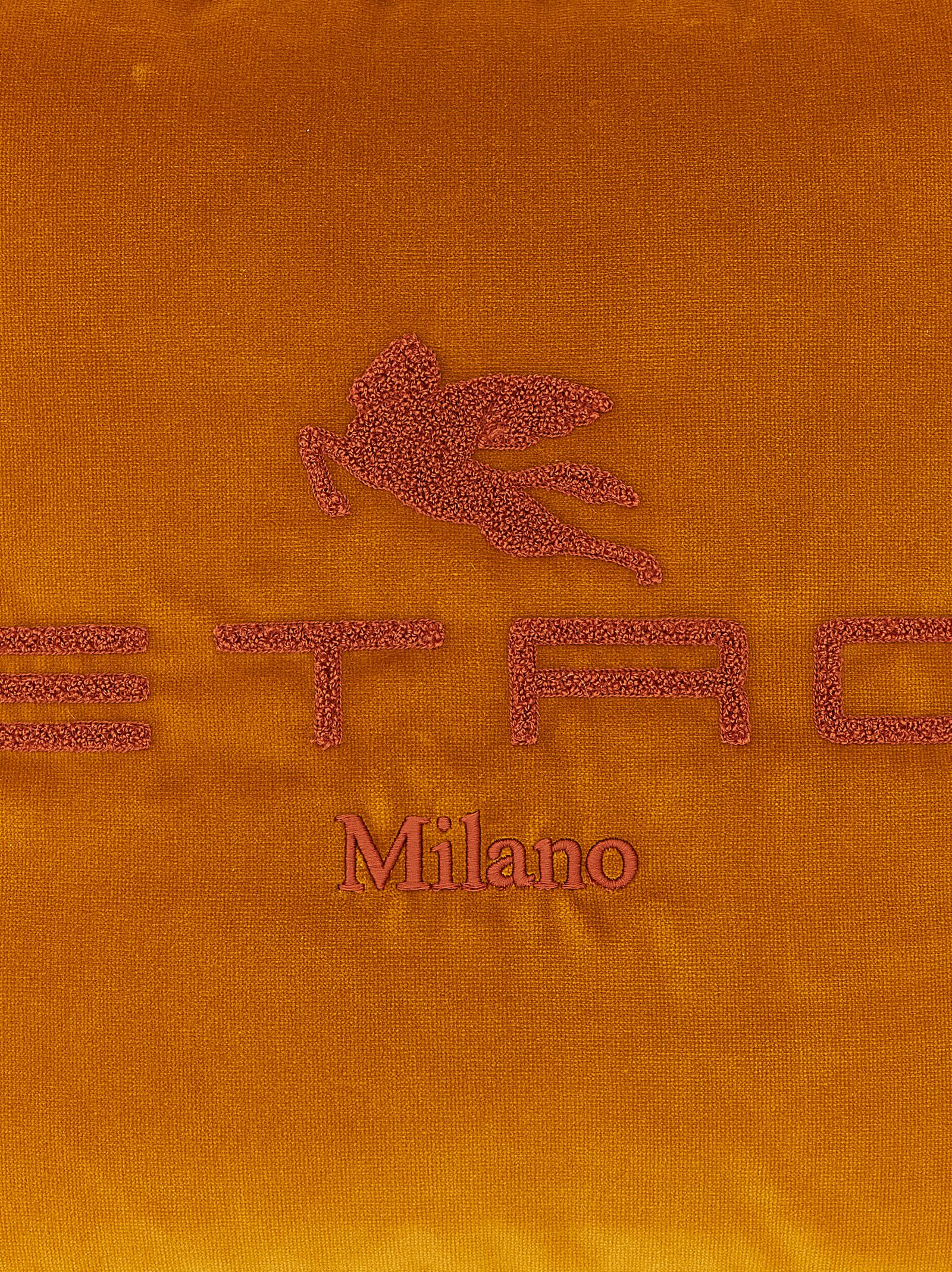 Peached and cool wool cotton cushion, front terry cloth logo embroidery, side zip closure.