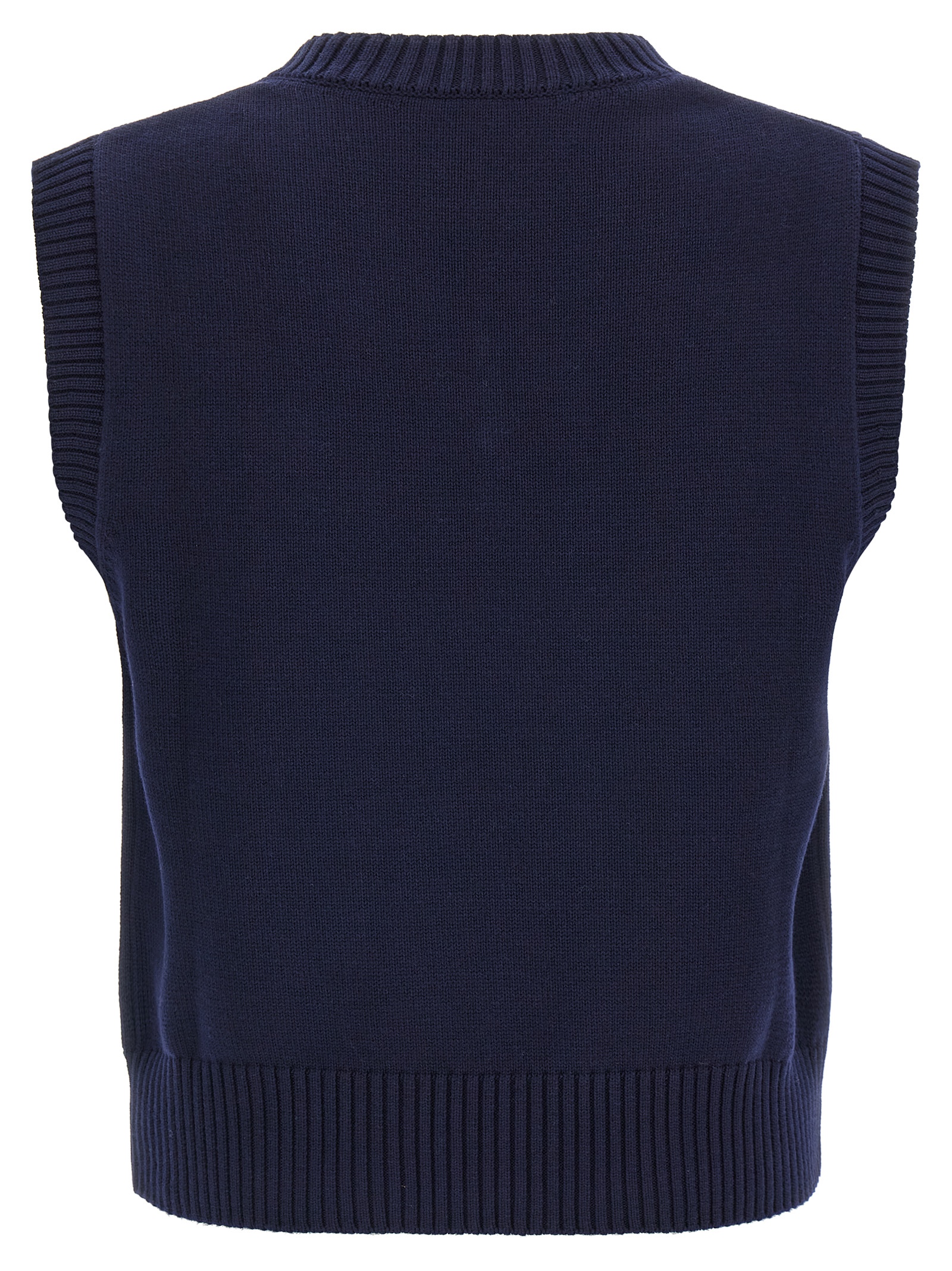 Вязаный жилет из смеси шерсти и хлопка, контрастная интарсия «Ami de Coeur» на передней части, V-образный вырез, отделка по низу.