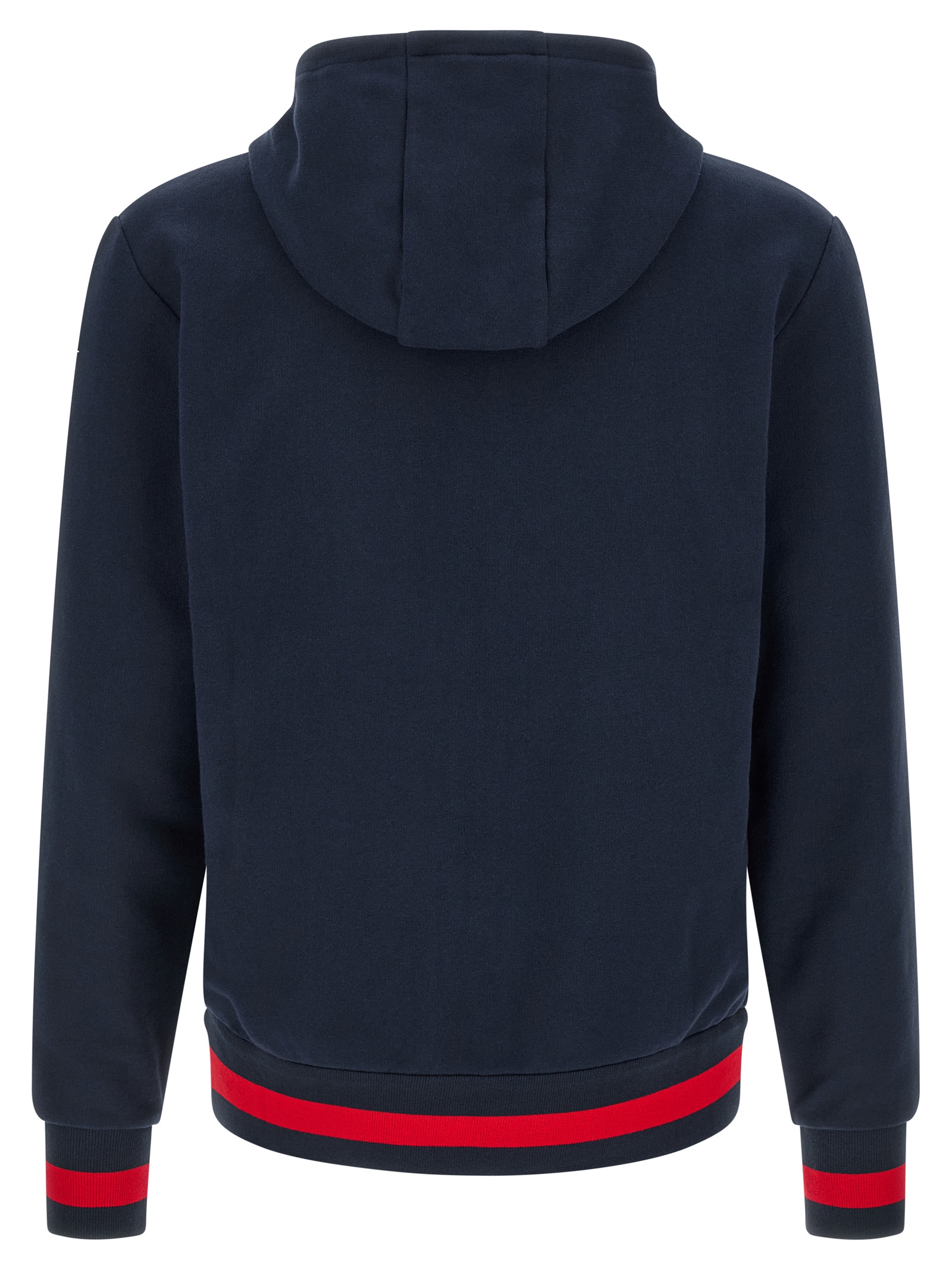Gauze cotton tracksuit with contrast bands, consisting of hoodie, front zip closure, pockets, long sleeves with cuffs and contrast logo embroidery and joggers with elastic and drawstring at the waist, straight leg, trompe l'oeil flap, pockets.