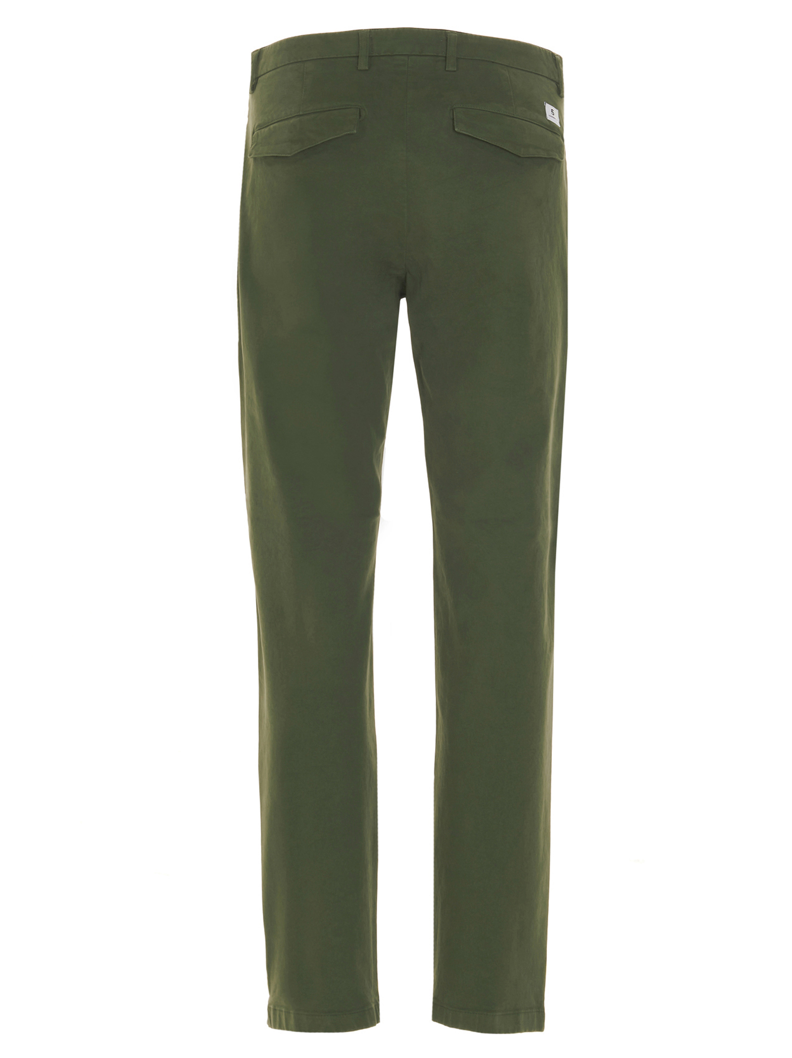 'Prince' pants in stretch cotton, crop model, stretched pleat, front zip and button closure, pockets, back logo patch.