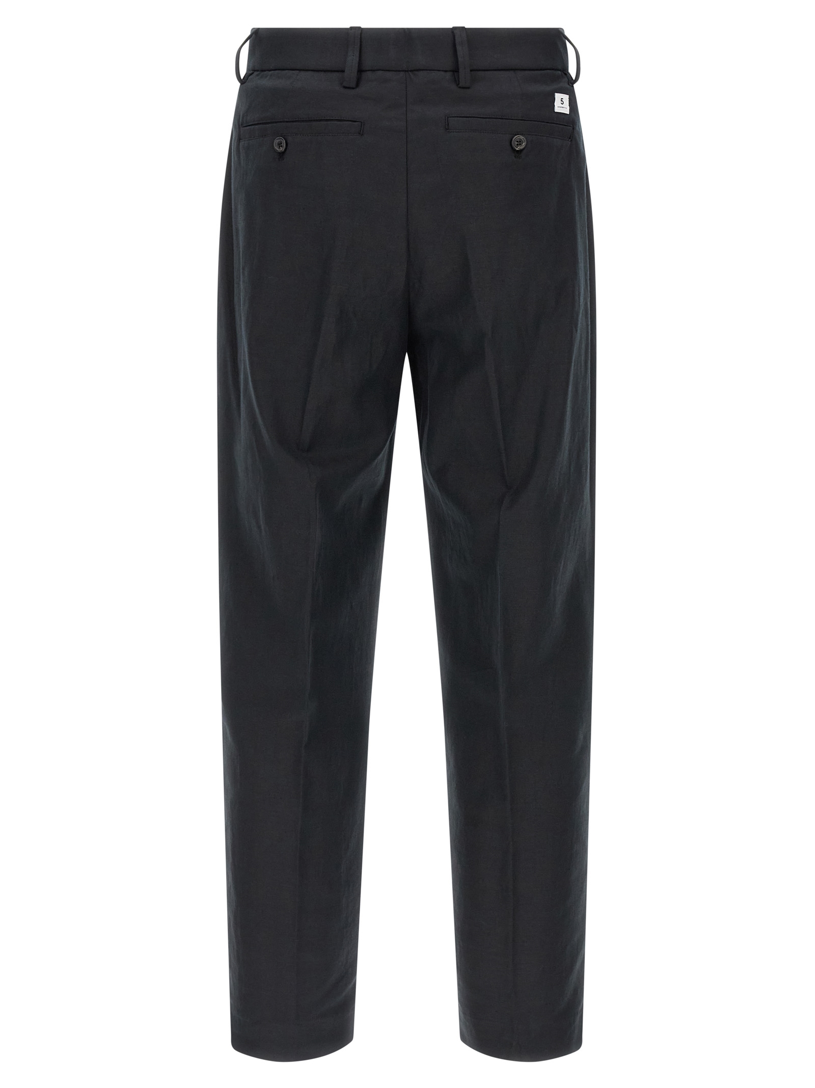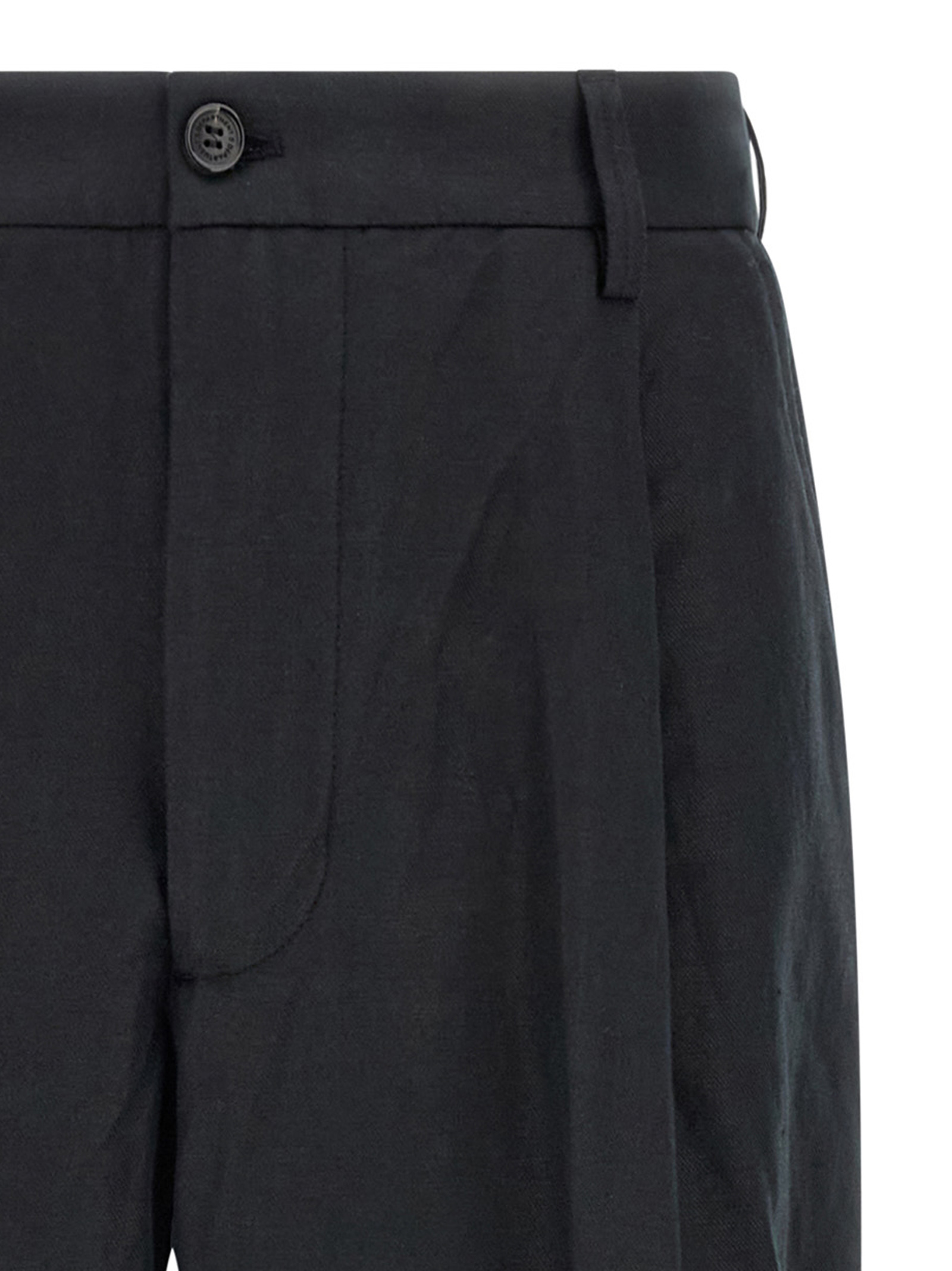 'Gin' slightly stretch linen and cotton blend pants with wide leg style with front pleats, front zip and button closure, side welt pockets and back welt pockets with button, logo patch detail.
