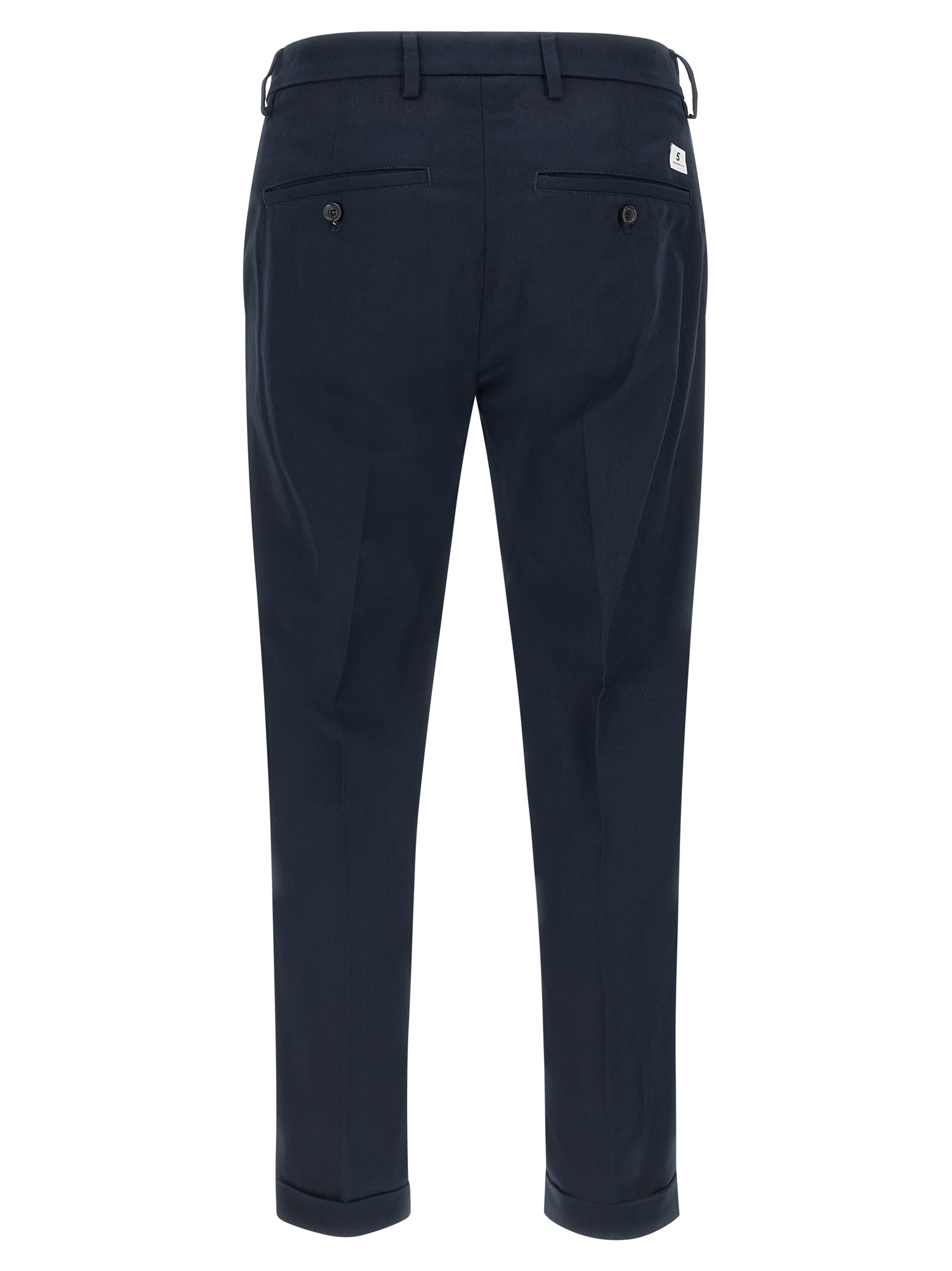 'Destynai' cotton gabardine chinos with regular fit, front hook and zip closure, welt pockets on the sides, back welt pockets, straight leg with front stretched pleat, turn-up phono.