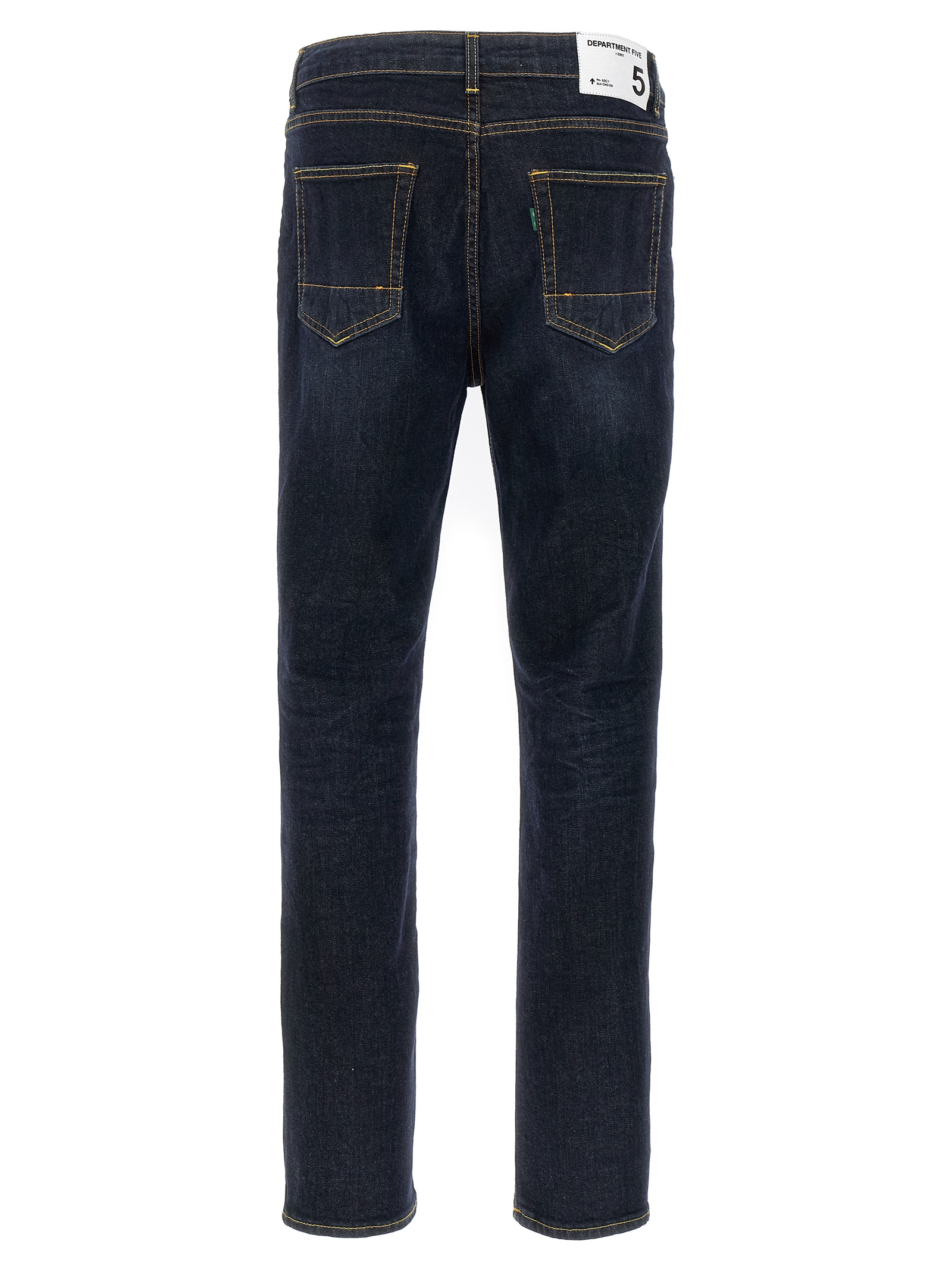 'Stones' used-effect cotton denim jeans, contrast stitching, regular waist, front zip and button closure, five pockets, straight leg, back logo tag.