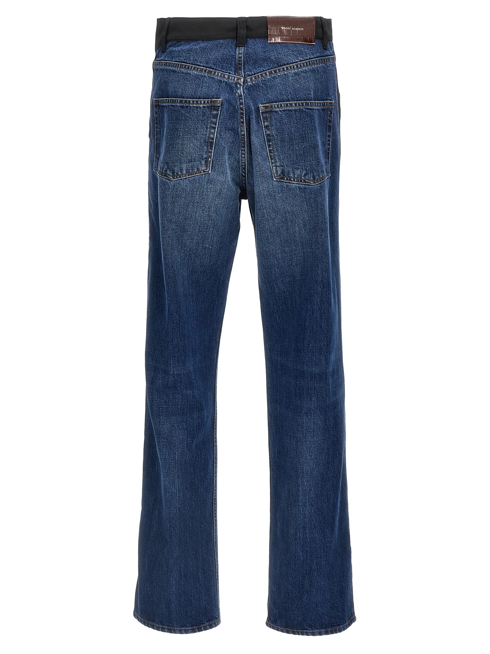 'Echo Denim' delavé cotton denim jeans with satin details, front logo embroidery, high waist, five pockets, button closure, straight leg, back logo tag.Характеристики товара
