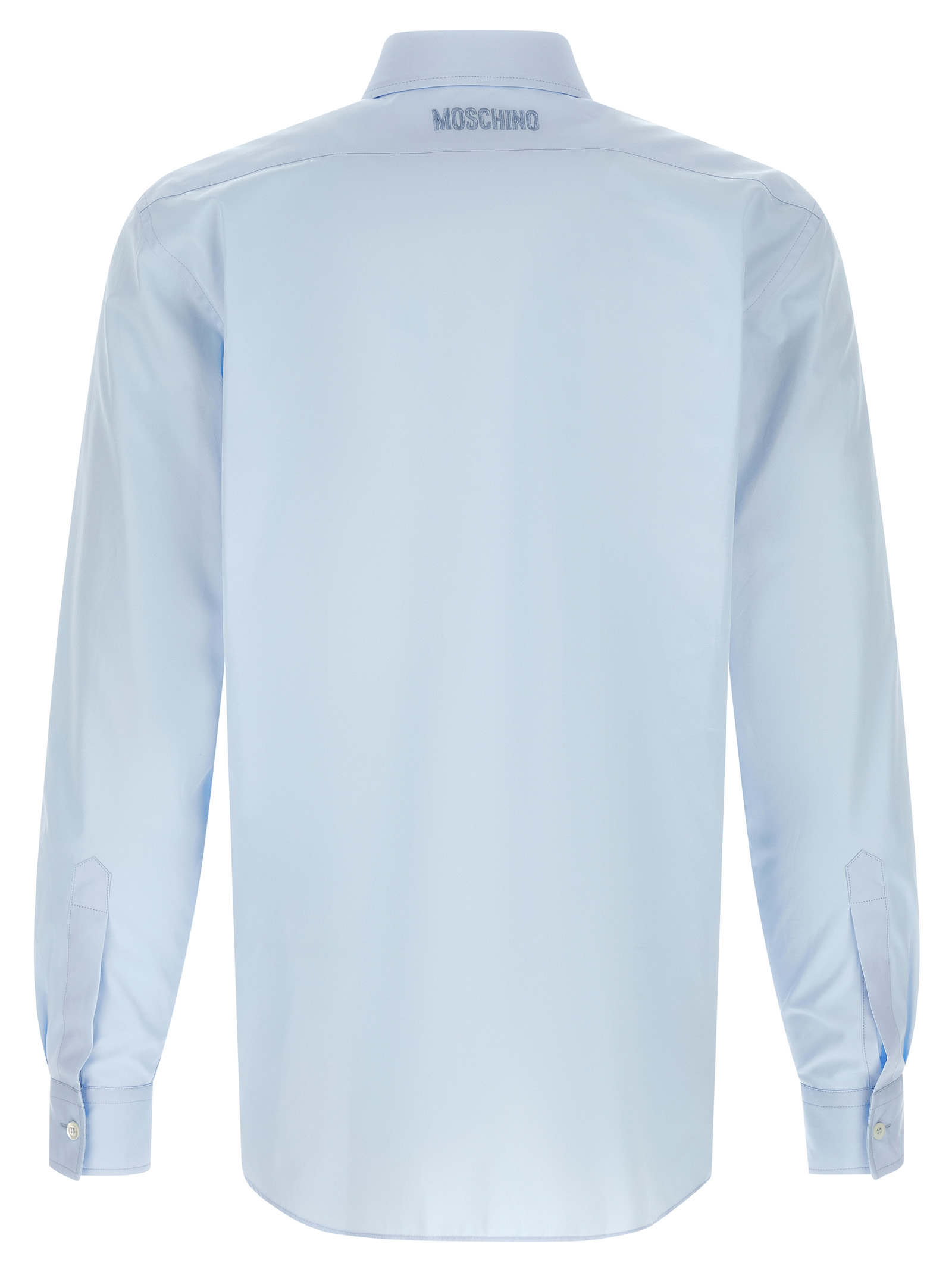Cotton poplin shirt, pocket with print in the shape of trompe-l'œil-effect glasses, front button closure, back logo embroidery, long cuffed sleeves.