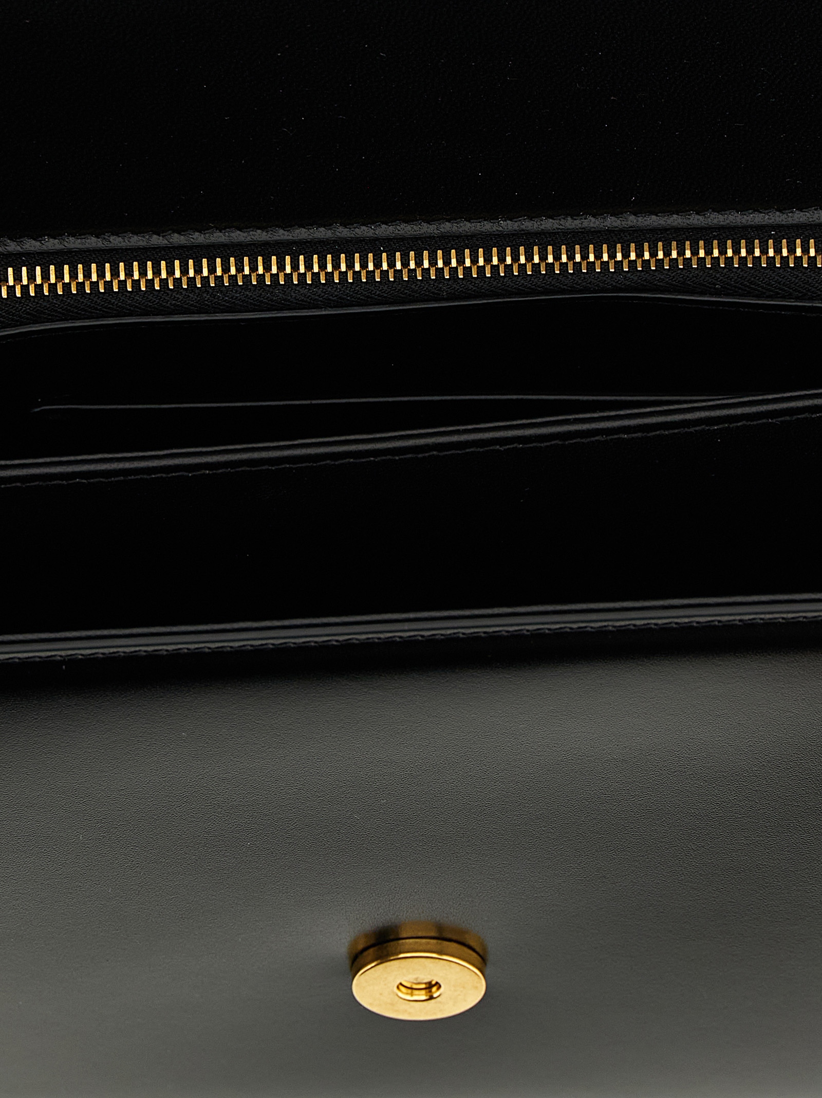 'Vain' smooth leather shoulder bag, magnetic flap closure with front metal 'VLogo Signature' cut out, sliding chain.