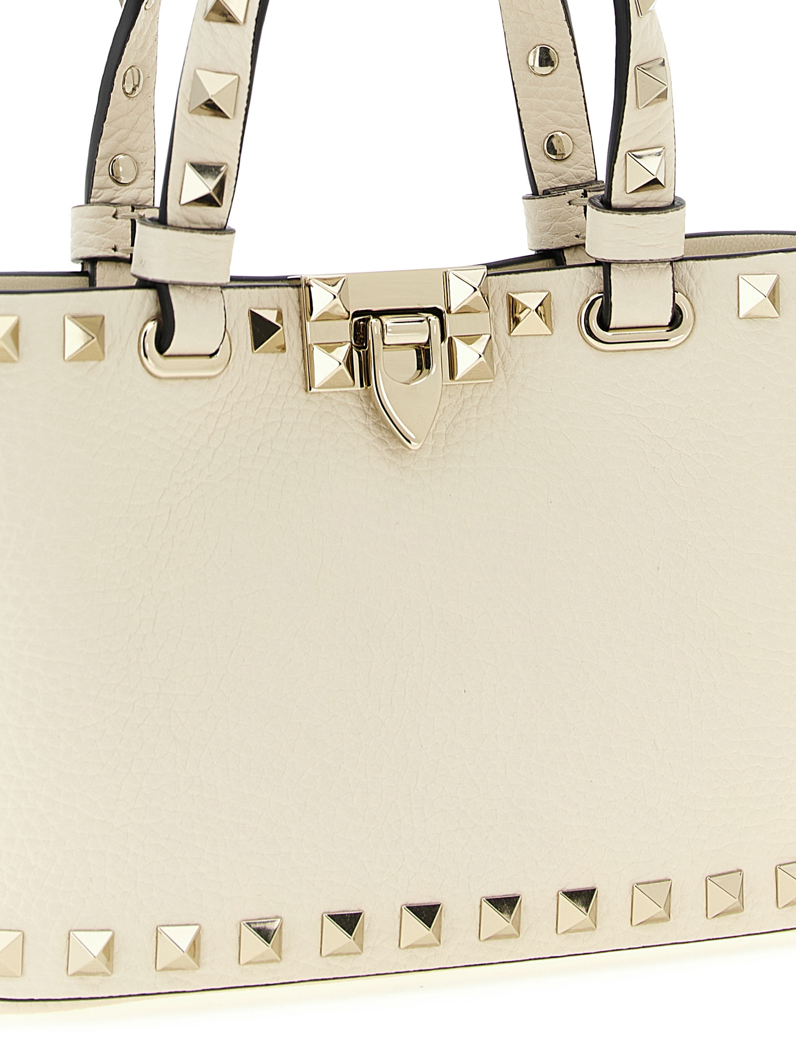 'Rockstud' mini shopping bag in garnet calf leather with platinum-finish metal stud applications, double fixed handle, hook closure, nappa lining, removable chain shoulder strap.Характеристики товара