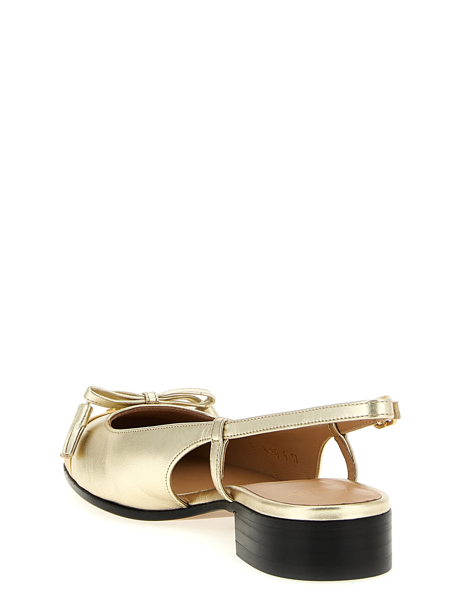 'Valet Du Roi' two-tone laminated leather slingback, antiqued effect metallic VLogo Signature with bow with front tassels, square toe model, adjustable strap, leather sole.