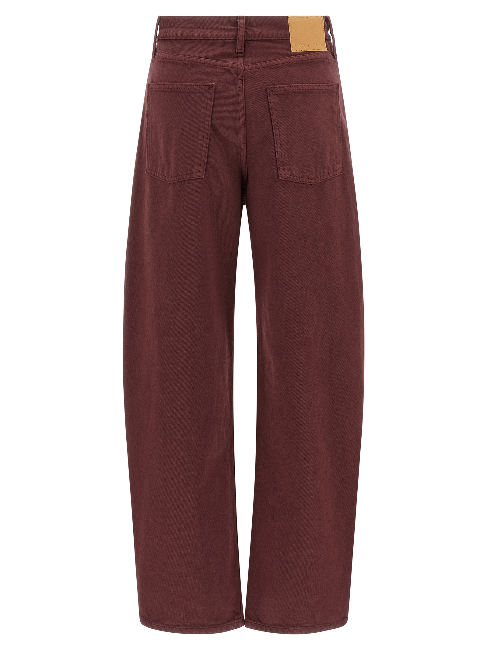 'Leroy Mid Relaxed Bow' overdyed and stonewashed cotton denim jeans, slightly curved wide leg, medium waist, five pockets, front zip and button closure, back logo tag.