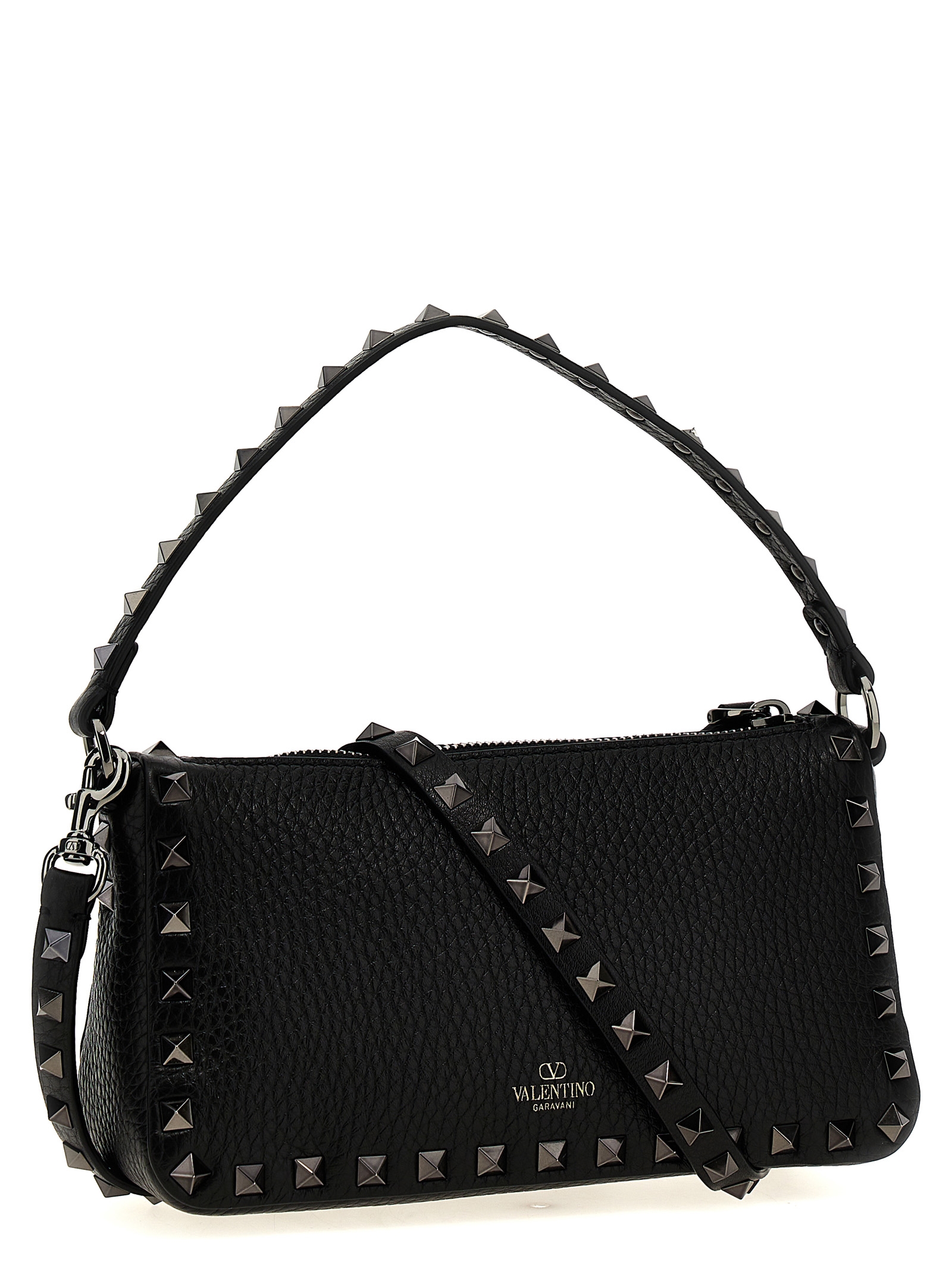 'Rockstud Small' leather shoulder bag with stud applications, zip closure, fixed handle, removable shoulder strap.