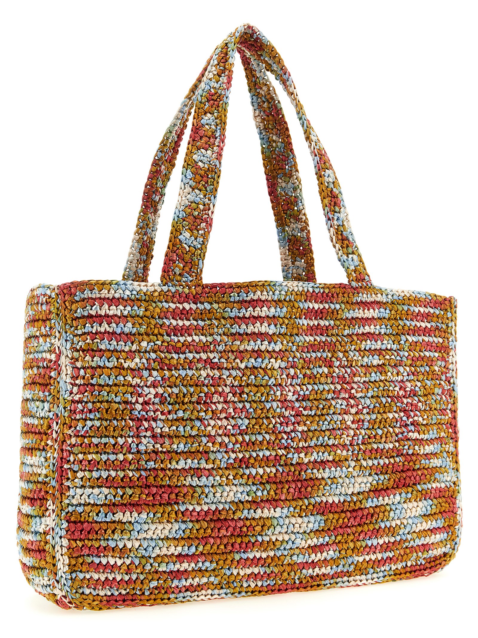 Large 'Viva Superstar' shopping bag in multicolor synthetic raffia, crochet processing with contrast maxi VLogo Signature on the front, double fixed handle. Handcrafted product, any imperfections are to be considered characteristics of uniqueness.Характеристики товара