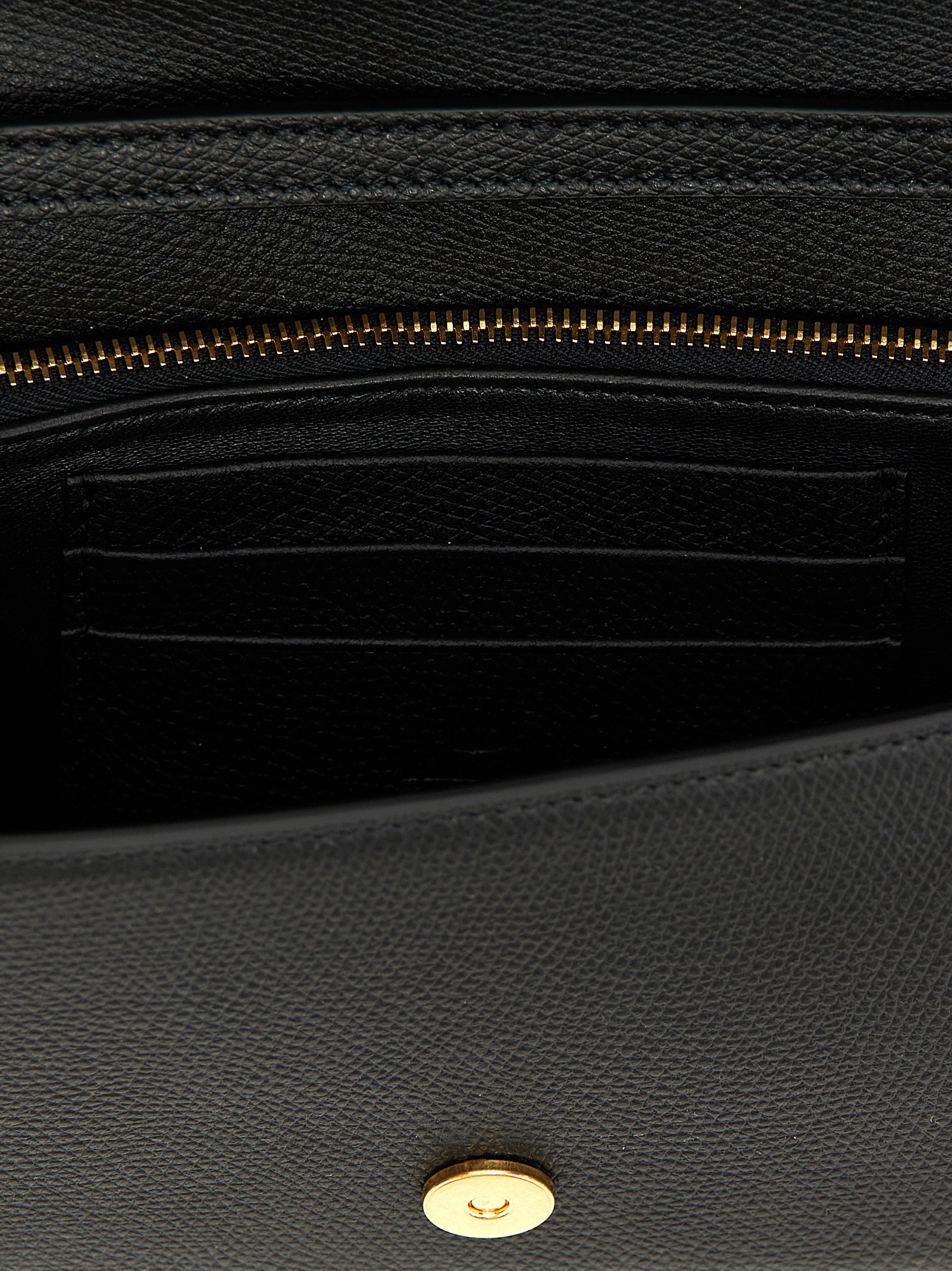Shoulder bag in grenade leather, magnetic flap closure with metallic VLogo Signature on the front, adjustable and removable shoulder strap.