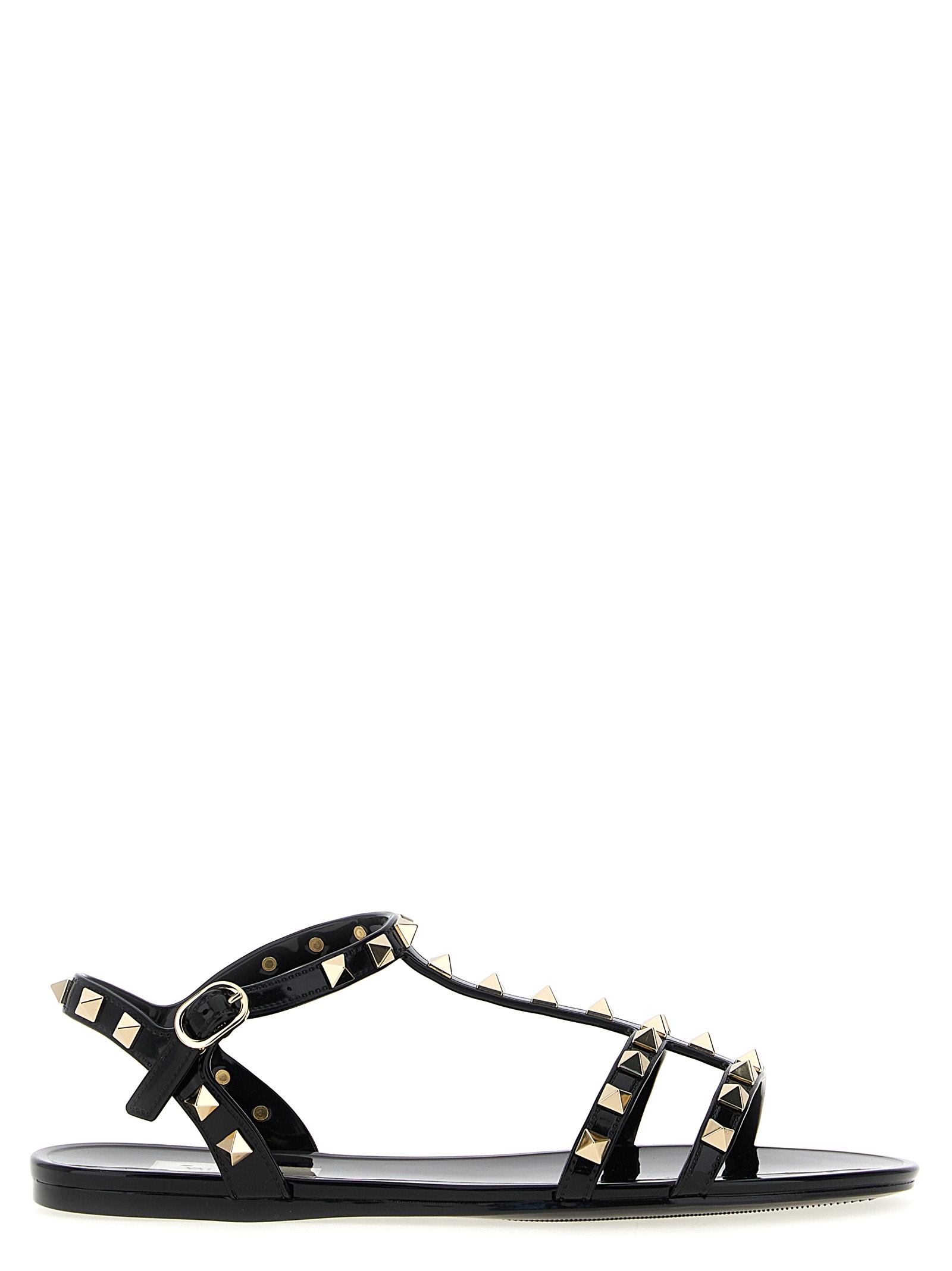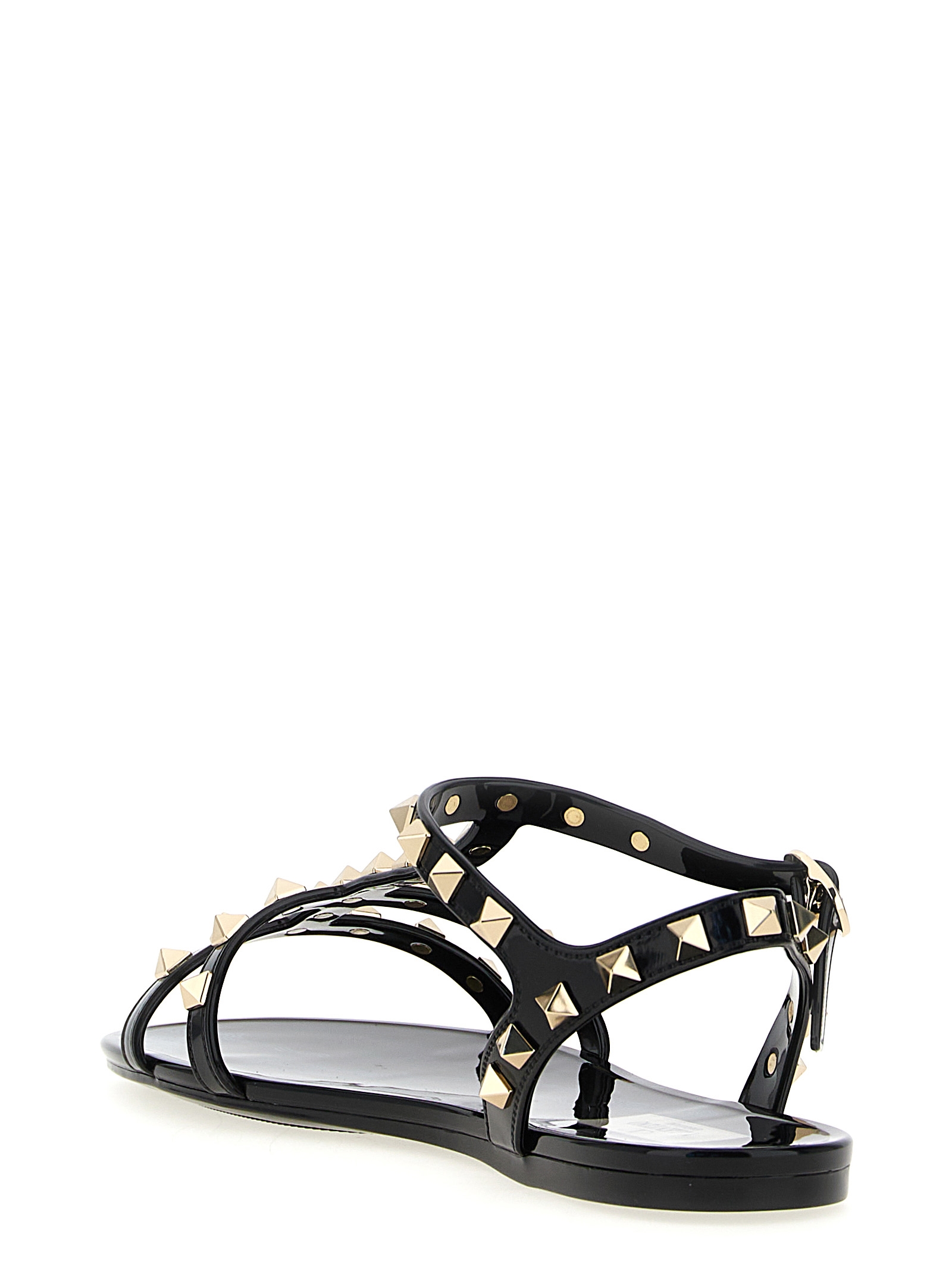 'Rockstud' rubber sandals with metal stud applications, adjustable strap, non-slip sole with stripes pattern.