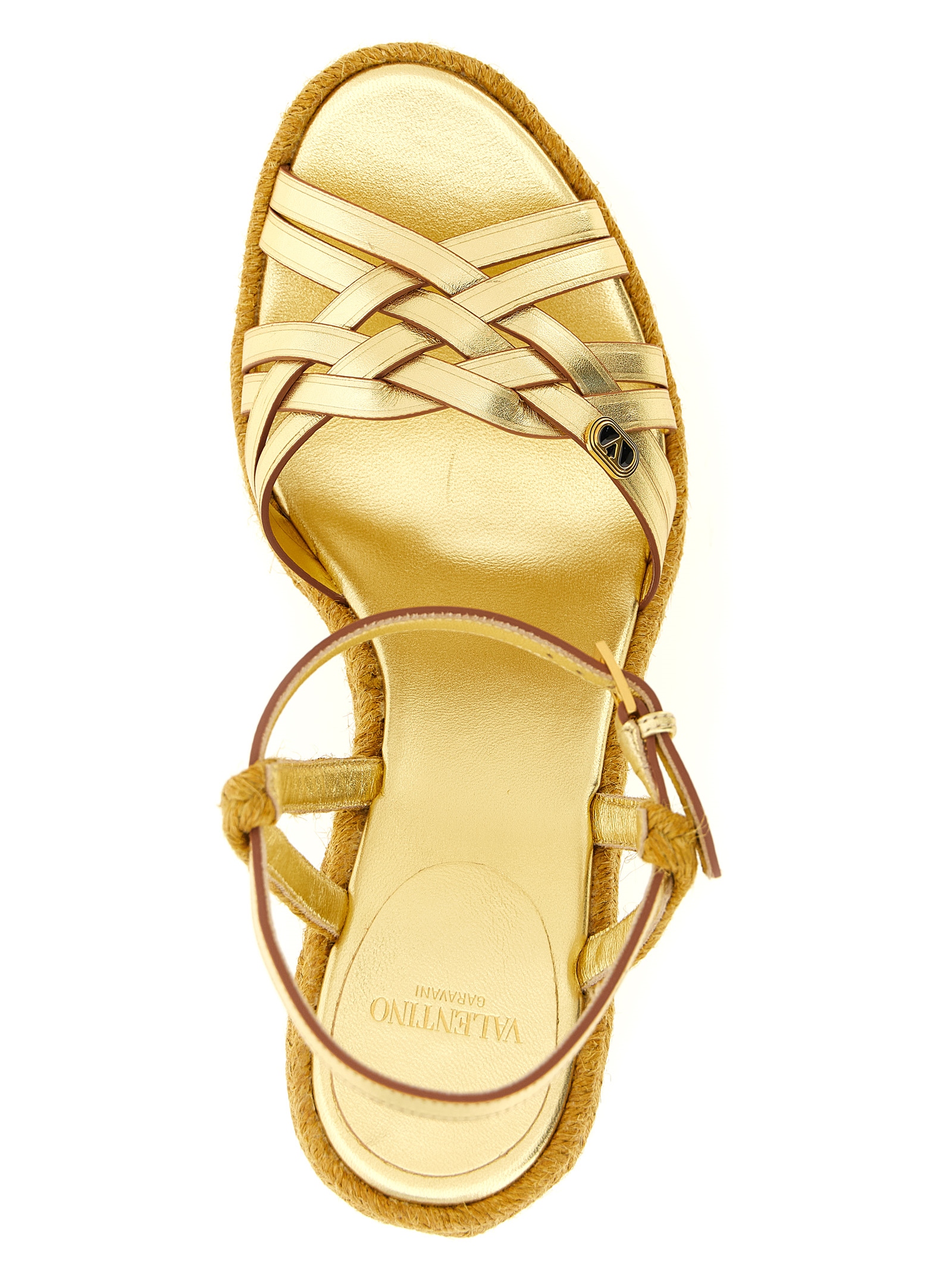 'Bribri' laminated calf leather espadrilles, front braided straps with side enameled metal VLogo Signature, adjustable ankle strap, rope wedge, rubber sole.Характеристики товара