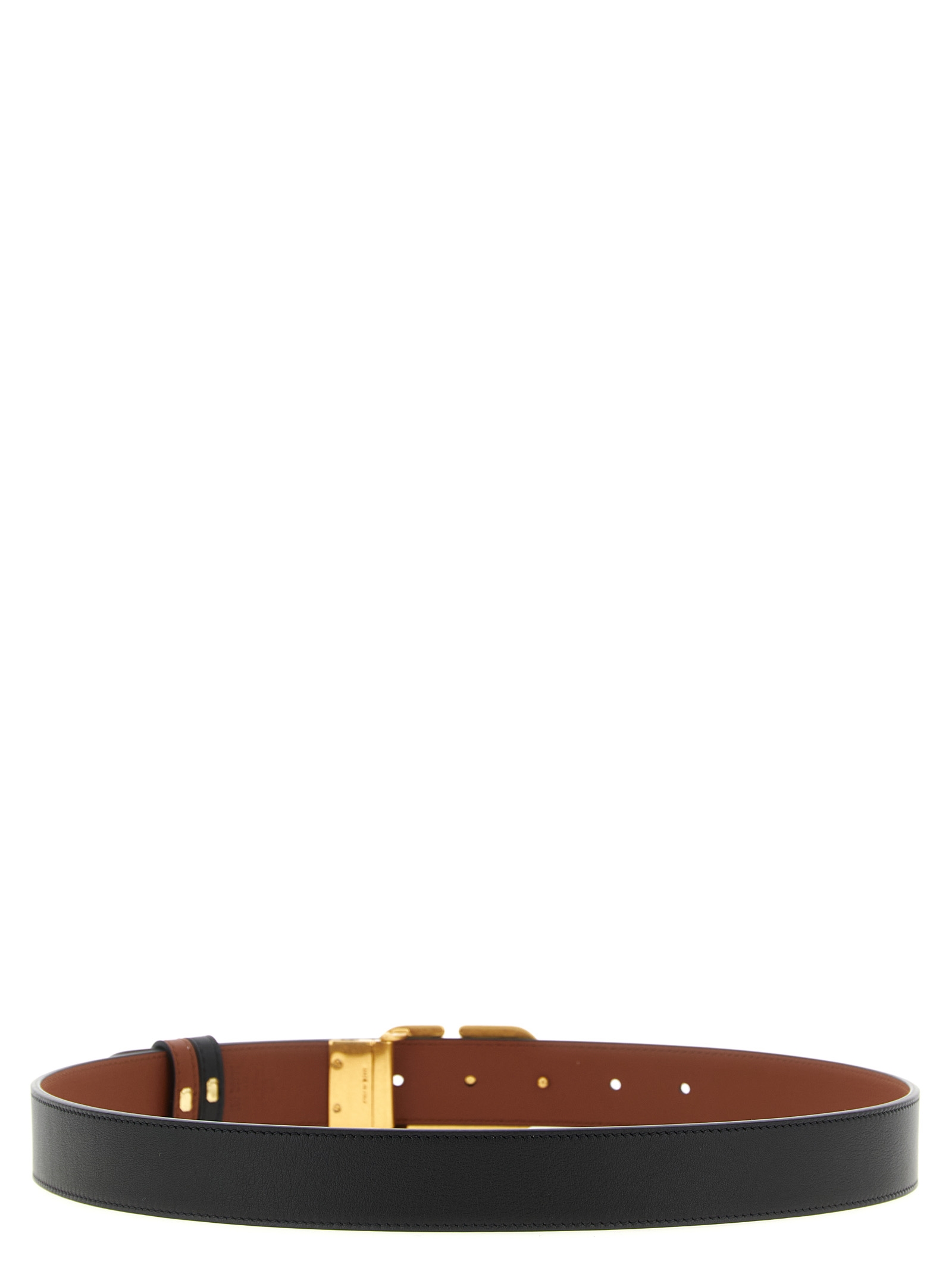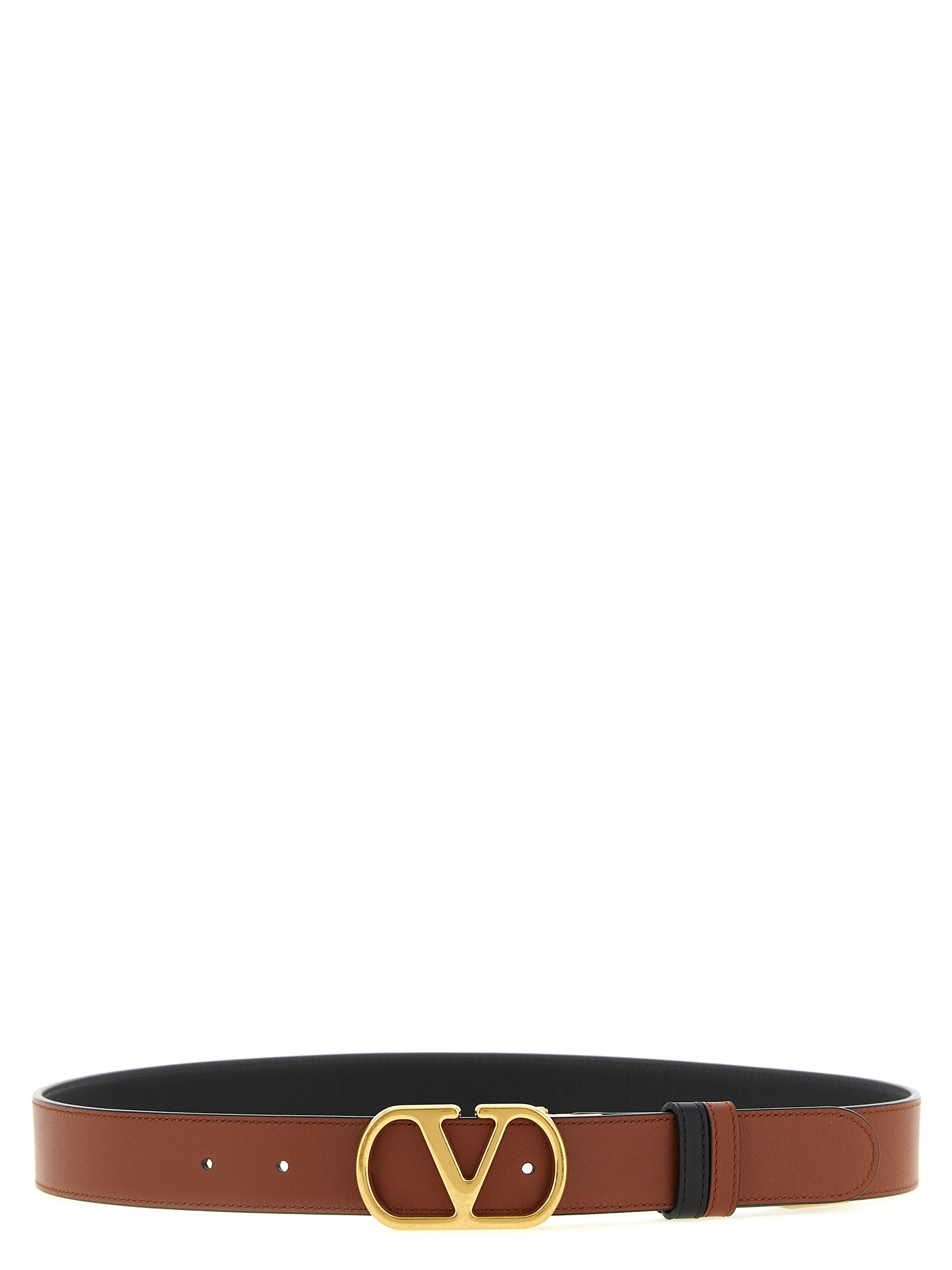 Двусторонний ремень из полированной и натуральной телячьей кожи, металлическая пряжка «VLogo Signature» с отделкой под старинную латунь. Сторона А: блестящая черная кожа. Сторона В: гладкая непрозрачная кожа коричневого цвета.Характеристики товара