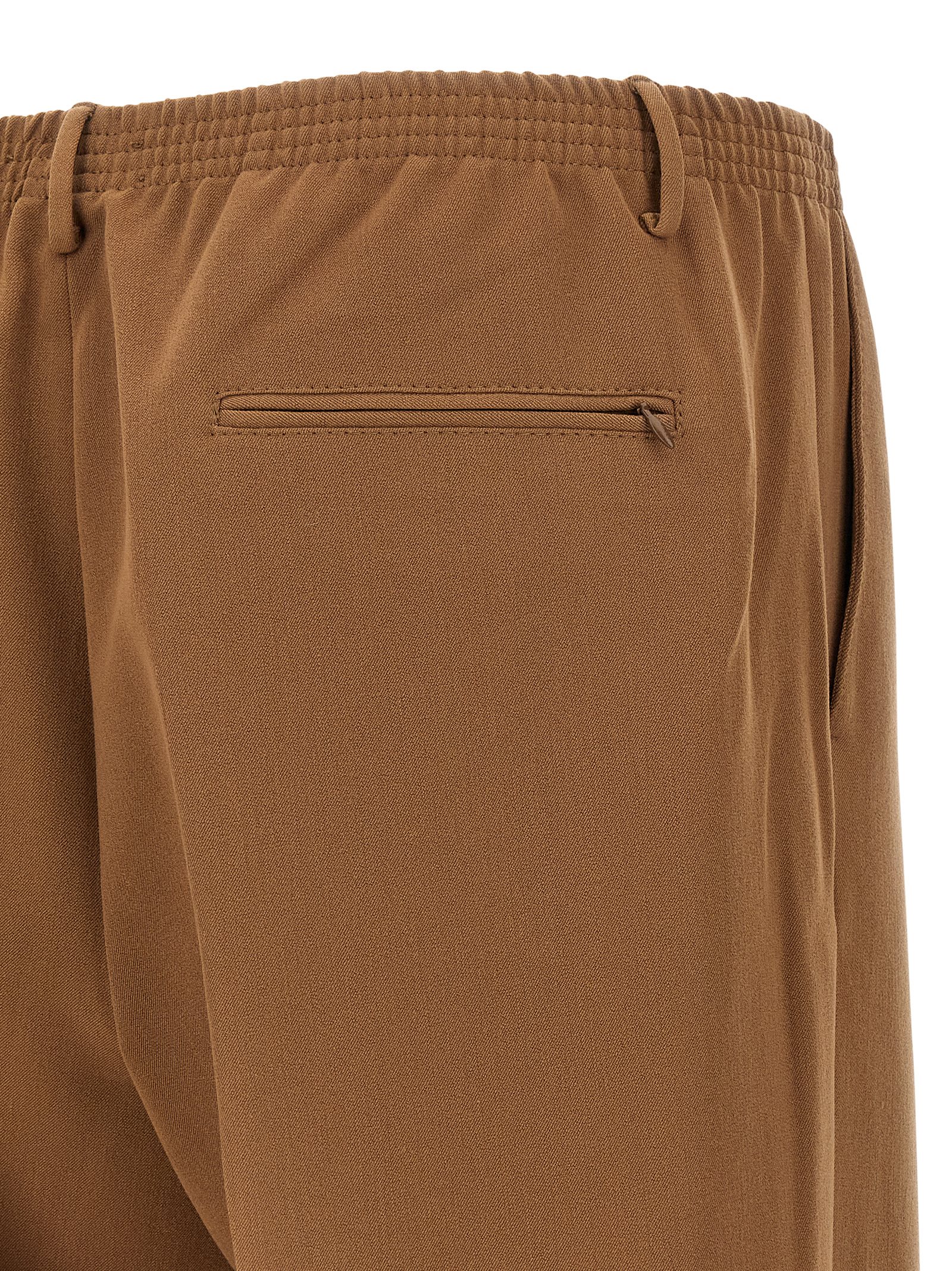 'Ezio' viscose blend trousers, elastic waistband, trompe l'oeil flap, pockets, straight leg, pleats, stretched pleat.