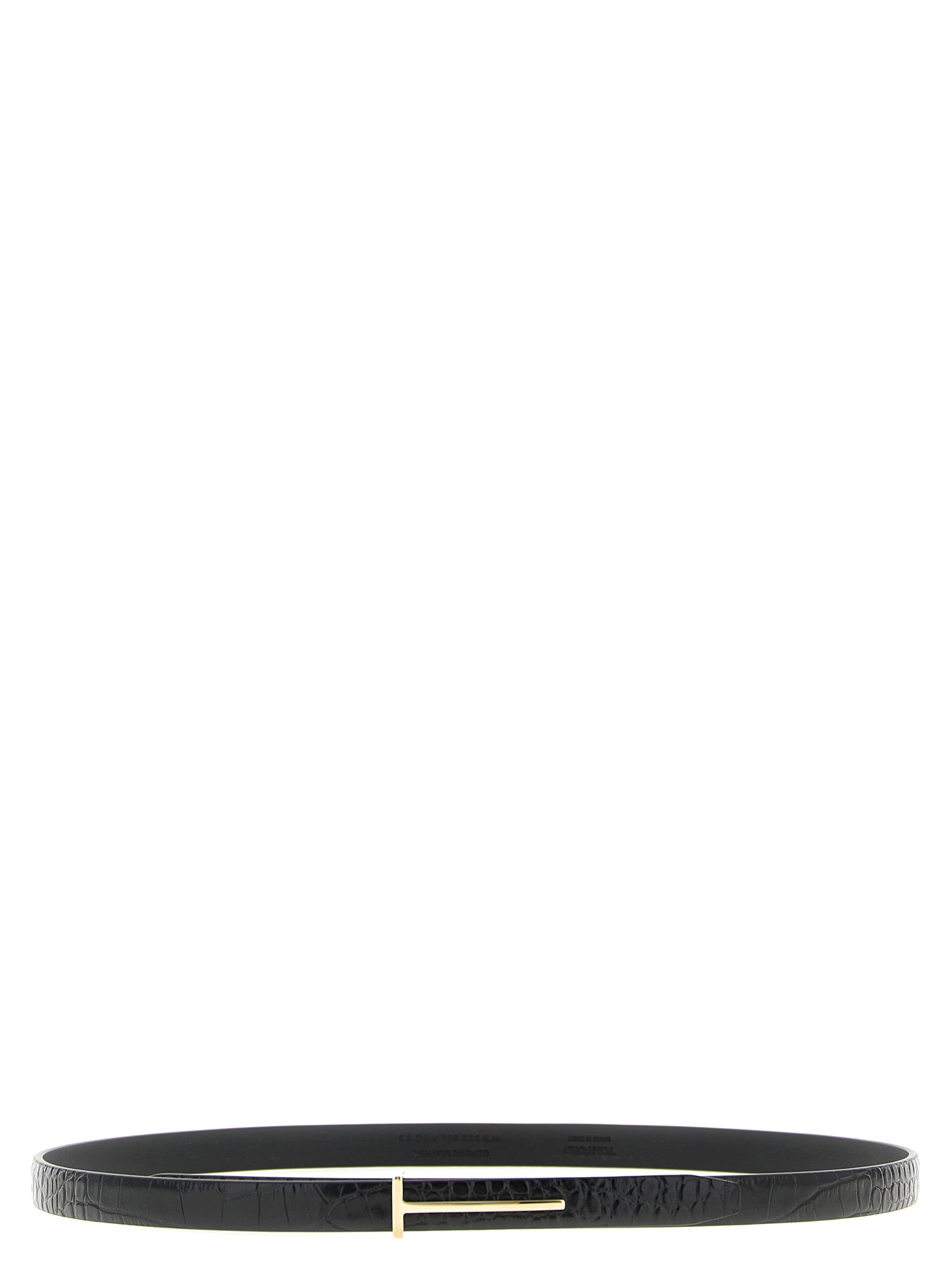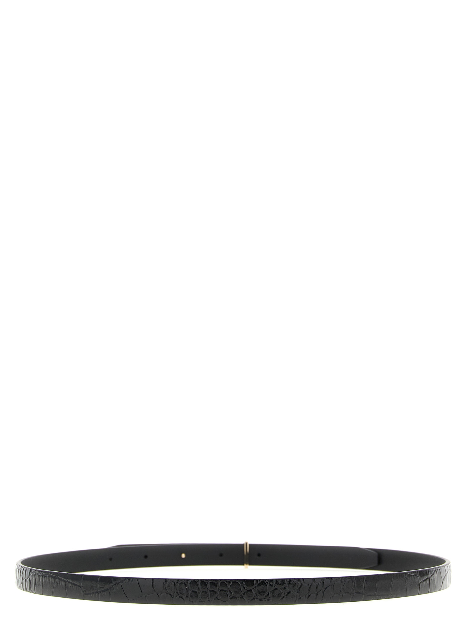 Leather belt with glossy effect crocodile print.
