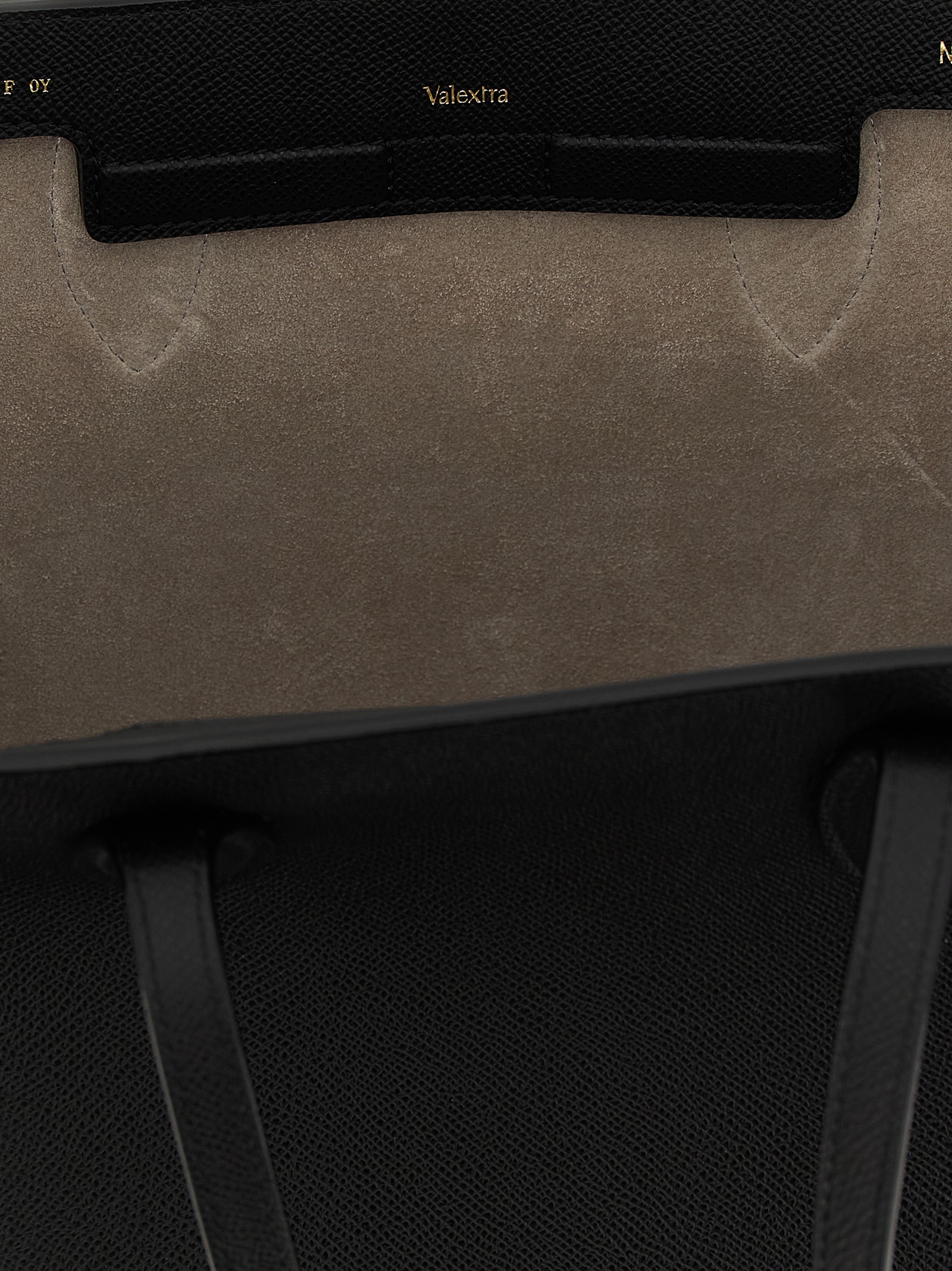 Millepunte Soft 'Vivi' leather midi shopping bag with hand-painted Costa piping, suede lining, double fixed handle, magnetic closure, foldable corners with inner strap, and removable clutch.
