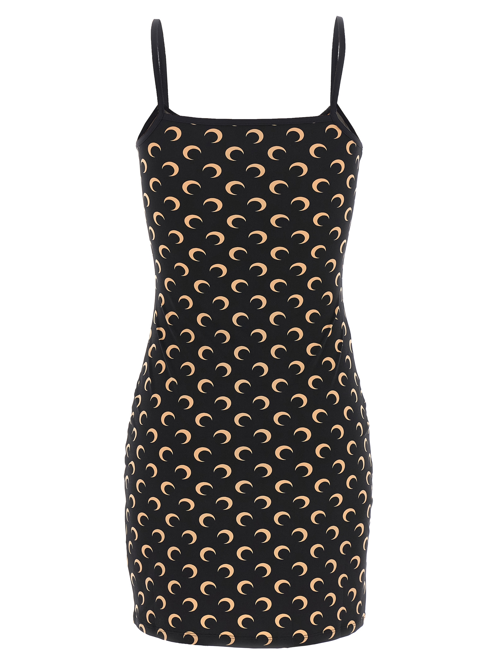 Платье из эластичного трикотажа с принтом «Луна» по всей поверхности, широким V-образным вырезом спереди, тонкими бретелями, без рукавов.