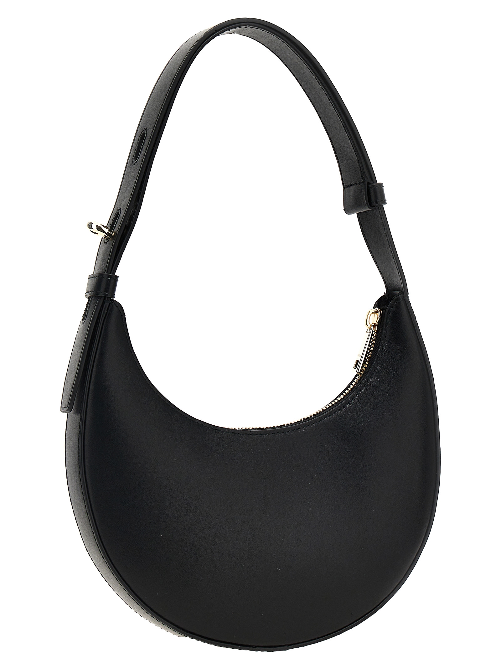 'Furla Delizia' mini leather shoulder bag with a silky and smooth touch, rigid crescent structure, front embossed logo, top zip closure, adjustable handle with metal swivel mechanism.