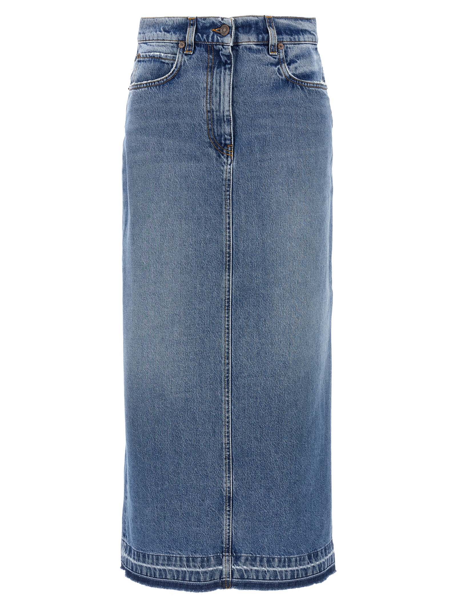 'Jorgy' cotton denim skirt with used-effect details, zip and button closure, five pockets, back split.