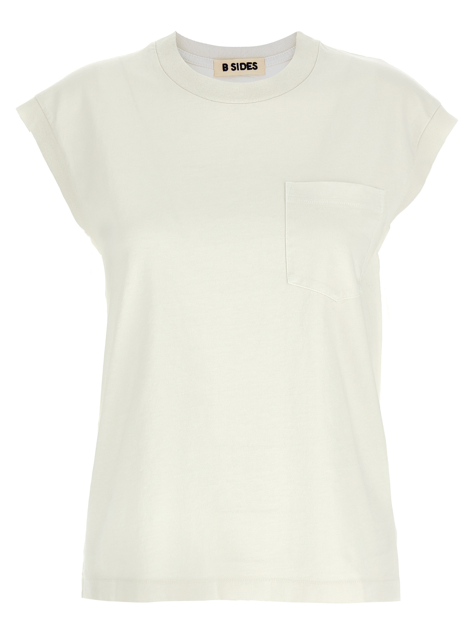 'Pocket' cotton top, crew neck, slightly wide fit, sleeveless with front patch pocket.