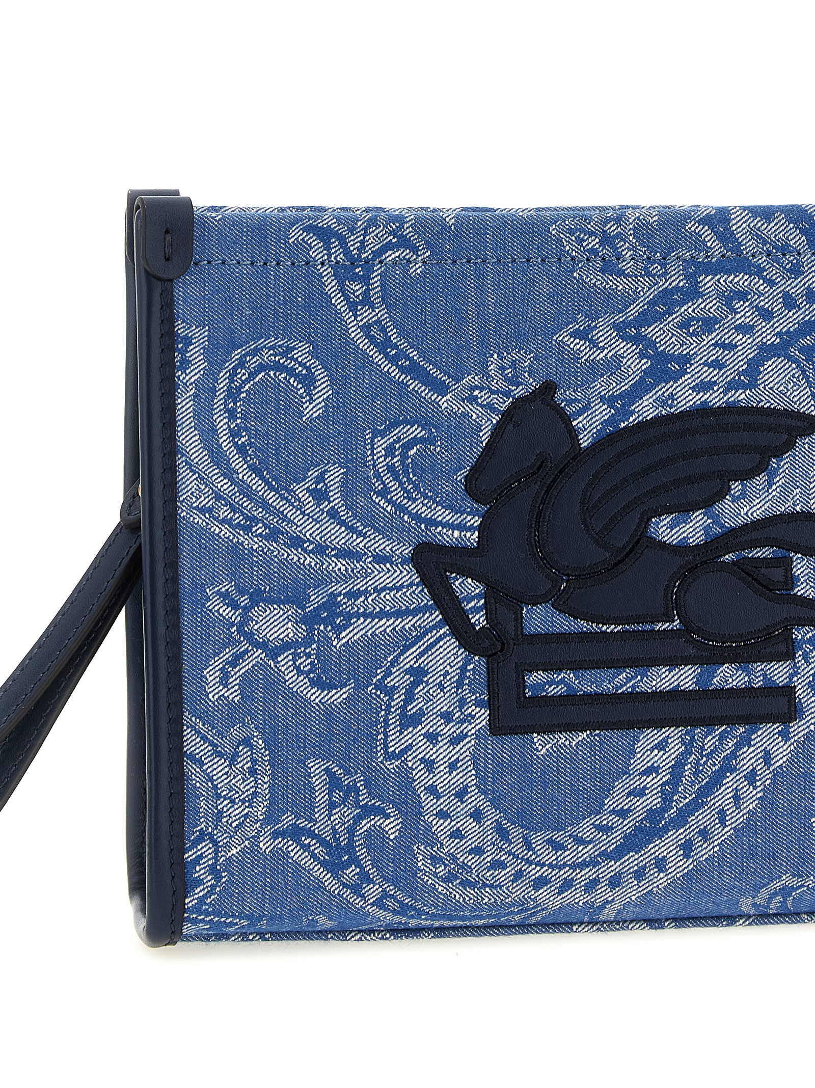'Paisley' jacquard fabric clutch bag with front logo embroidery, zip closure.