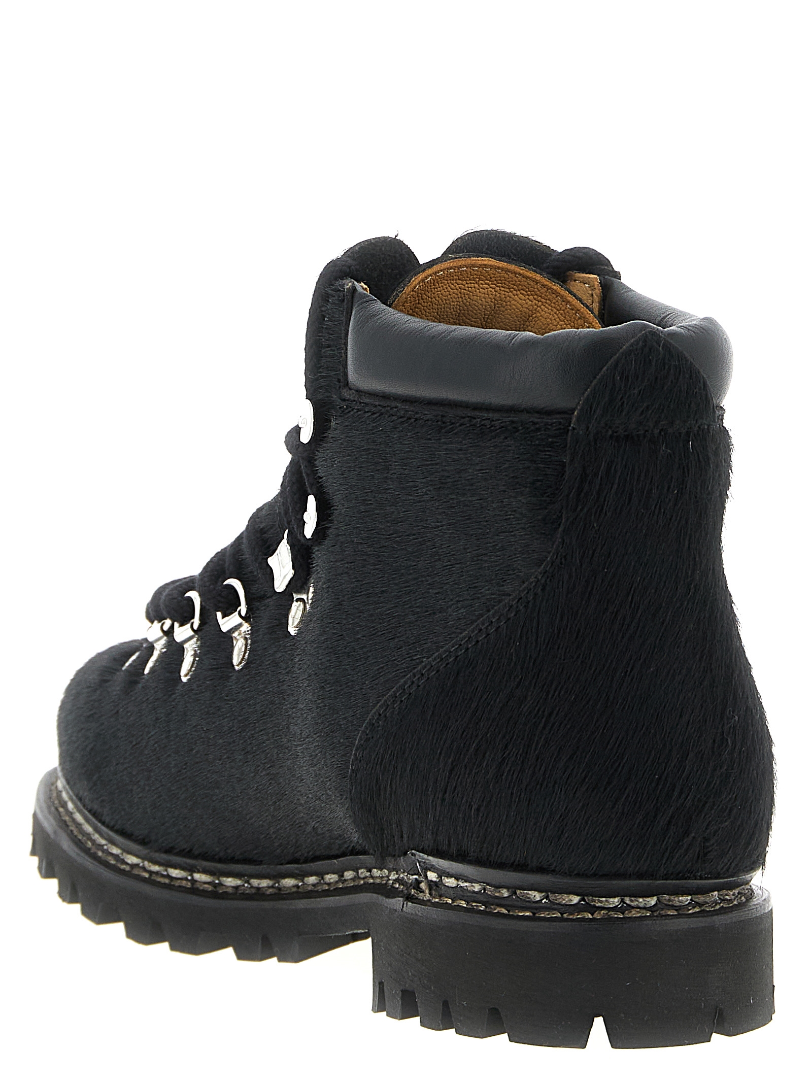 'Junya Watanabe x Paraboot' pony hair boots, rounded toe, metal rivet closure, non-slip rubber sole.