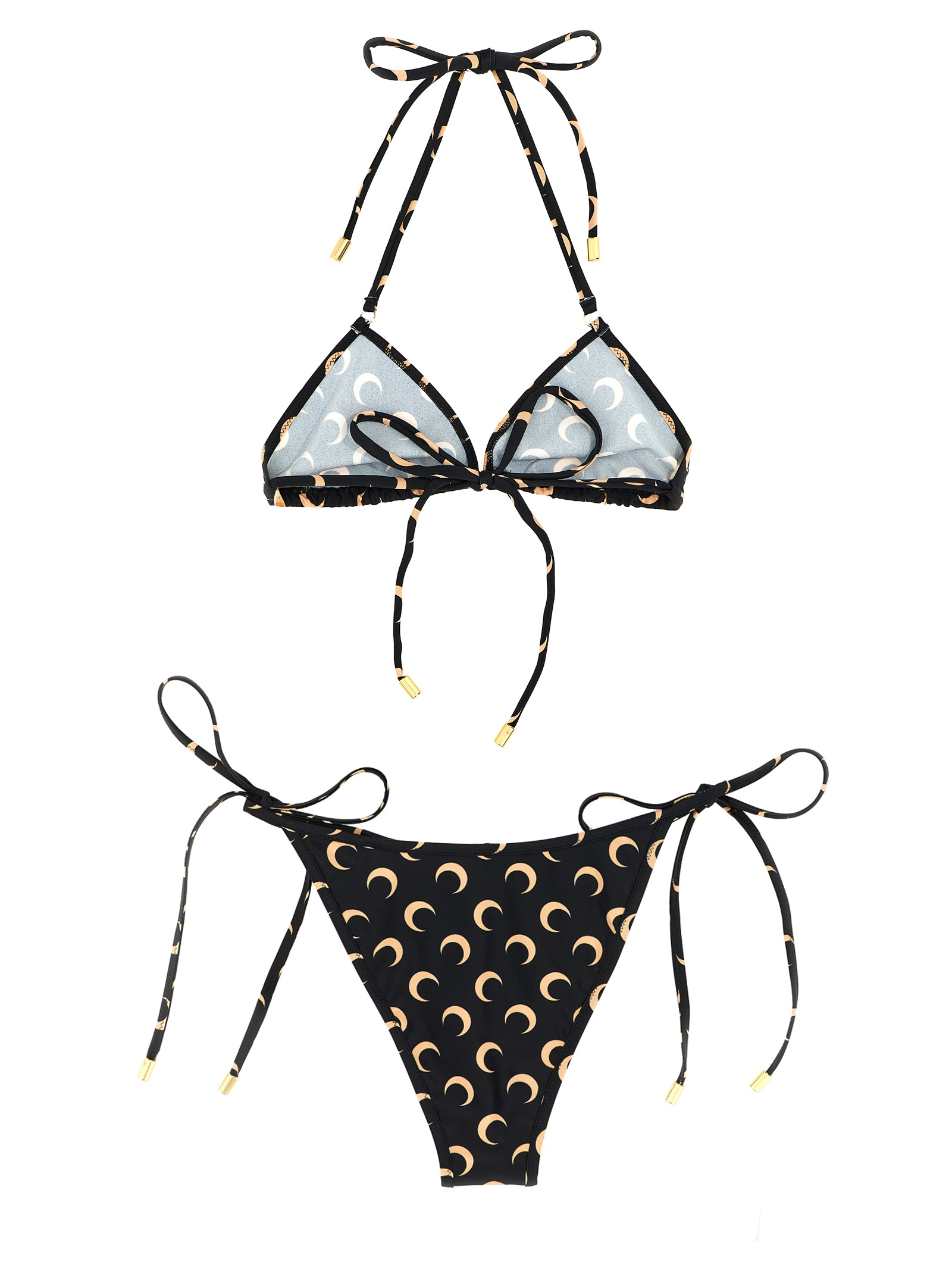 Бикини из эластичной ткани с принтом в виде логотипа по всей поверхности, треугольный топ со шнуровкой, трусики со шнуровкой по бокам.Характеристики товара