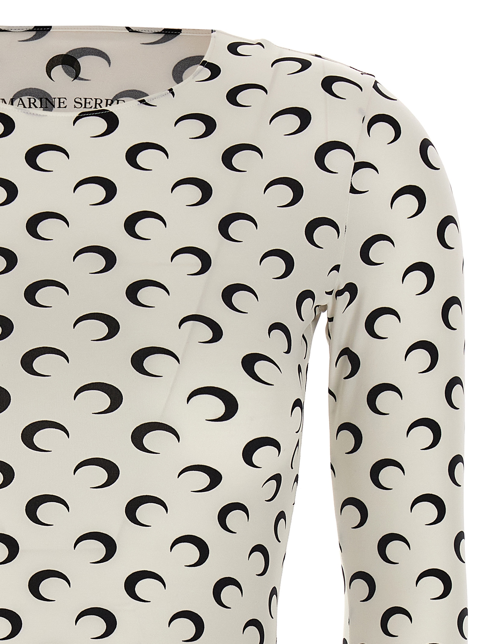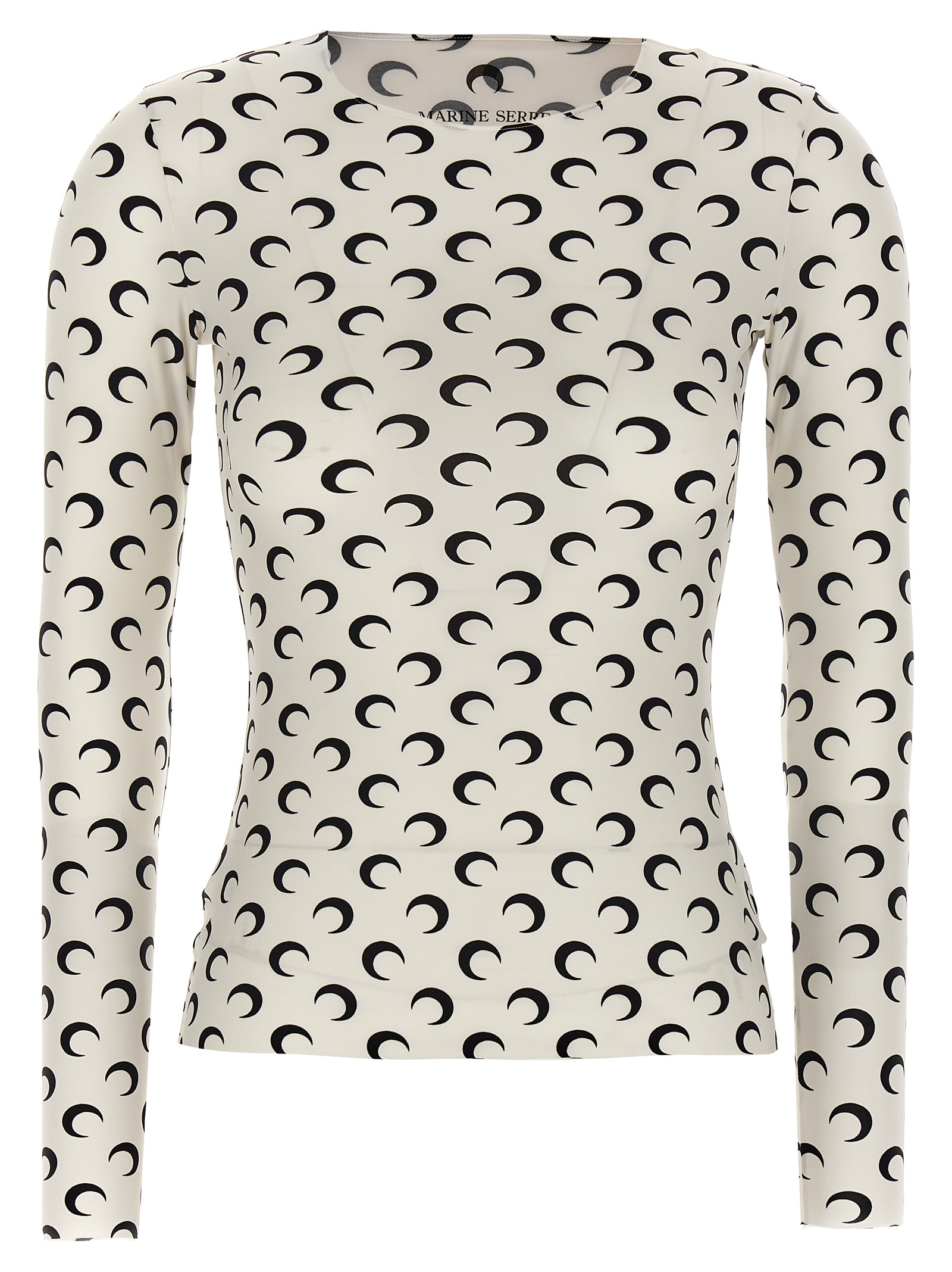 Эластичная футболка 'Moon Printed Jersey Second Skin' с логотипом по всей поверхности, круглым вырезом и длинными рукавами.Характеристики товара