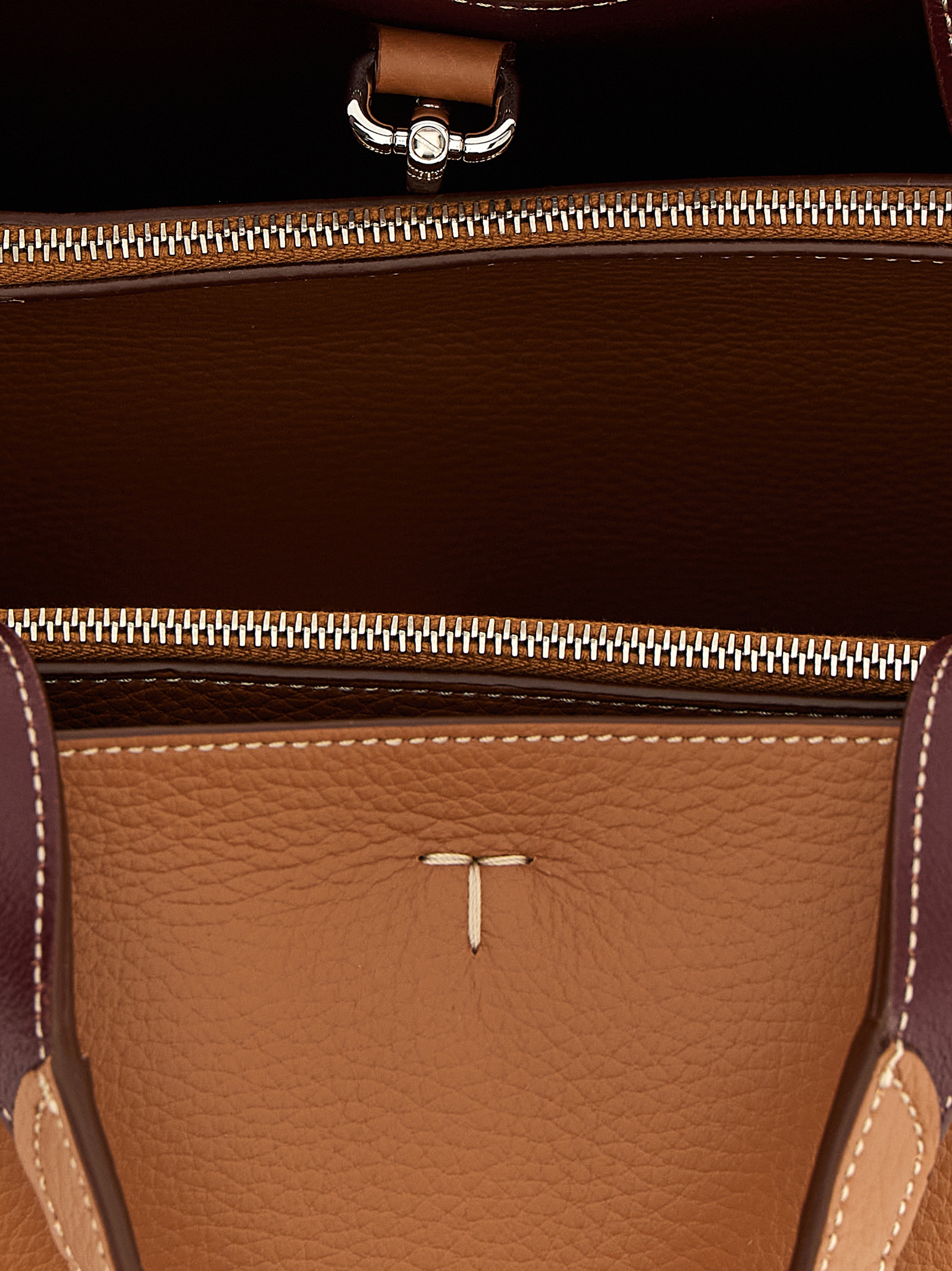 Миниатюрная сумочка из зернистой кожи с тисненым логотипом спереди, прострочкой в ​​тон, двойной фиксированной ручкой, застежкой-карабином, металлическими деталями, регулируемым и съемным плечевым ремнем, съемным металлическим кулоном «T Timless».