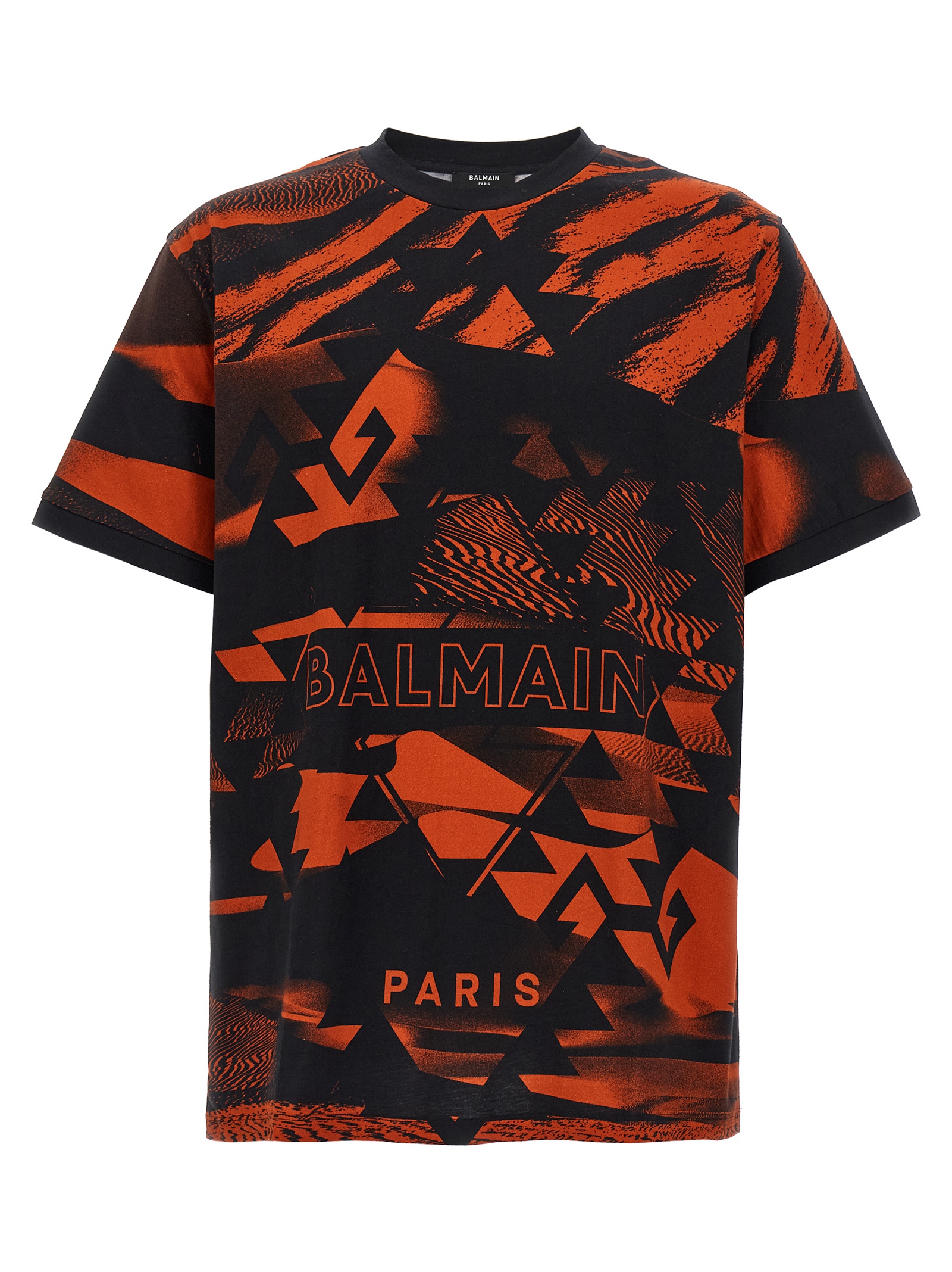 Cotton T-shirt with all-over print, crew neck, short sleeves.